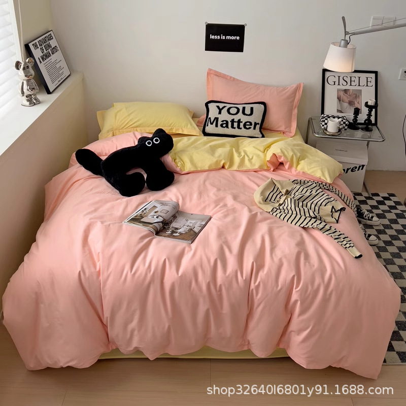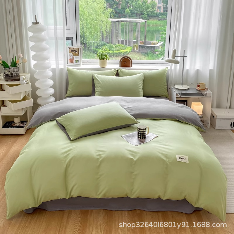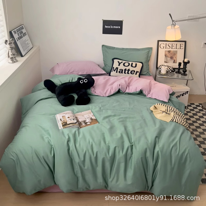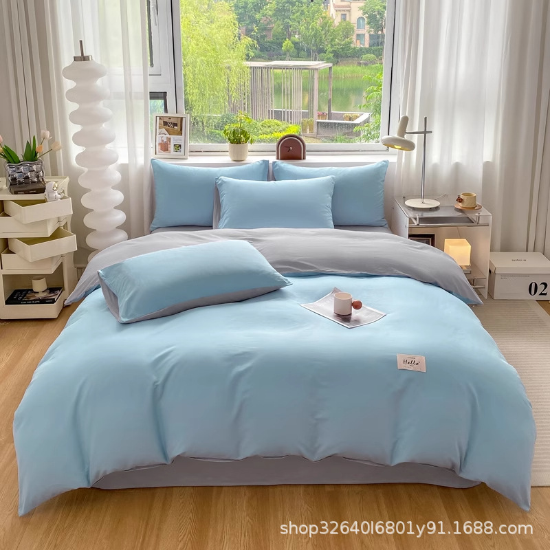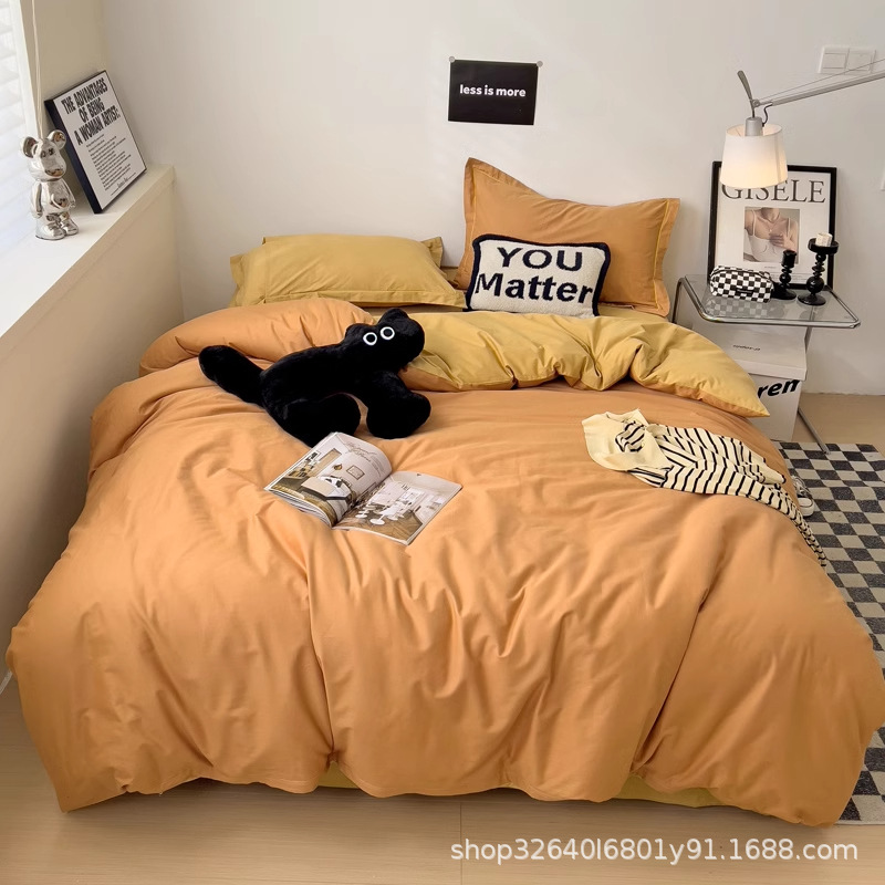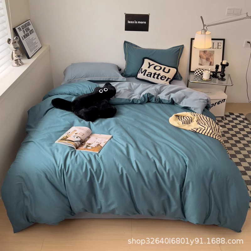 퓨어 코튼 솔리드 컬러 더블 스타일 4 피스 세트 학생 기숙사 퓨어 코튼 3 피스 세트 퀼트 커버 침구 심플 스타일