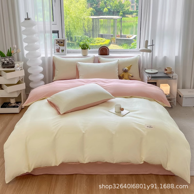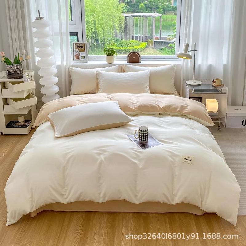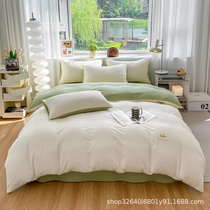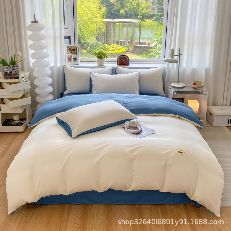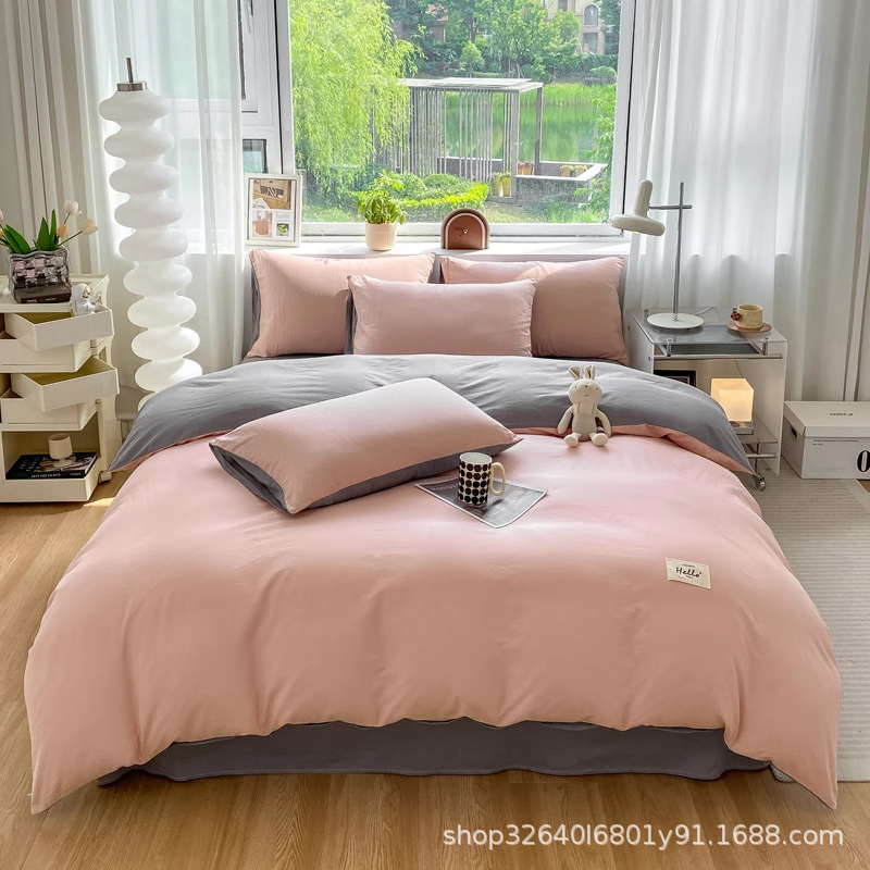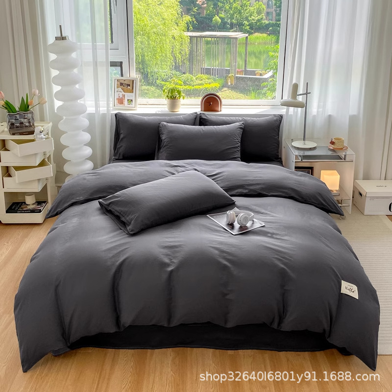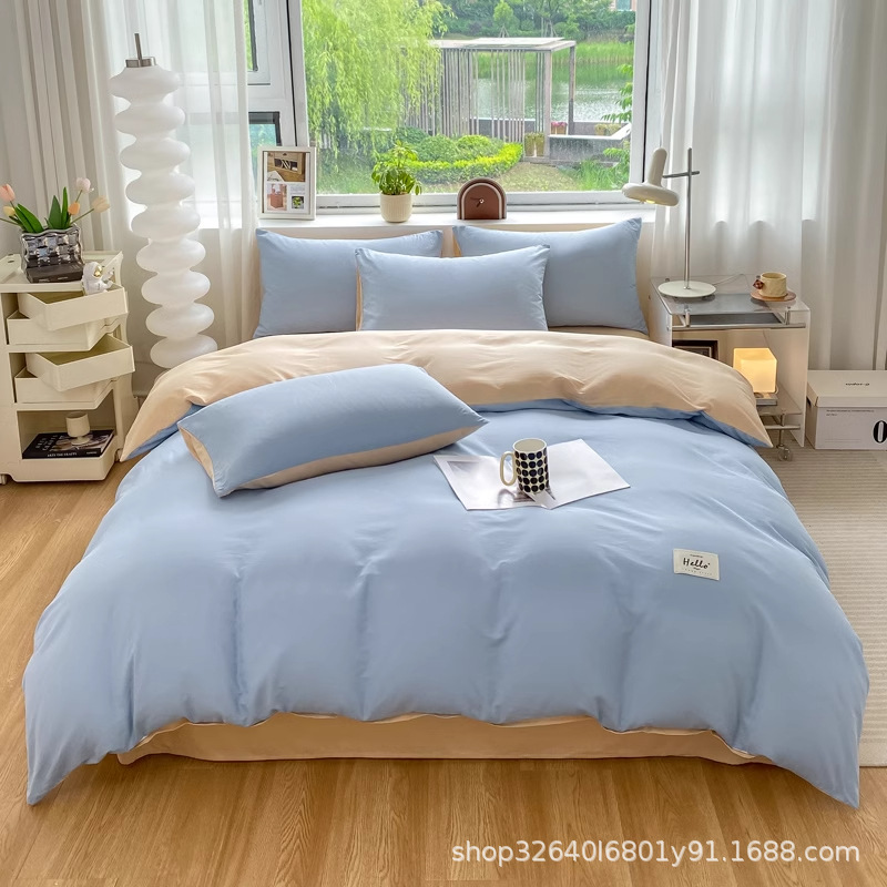 퓨어 코튼 솔리드 컬러 더블 스타일 4 피스 세트 학생 기숙사 퓨어 코튼 3 피스 세트 퀼트 커버 침구 심플 스타일