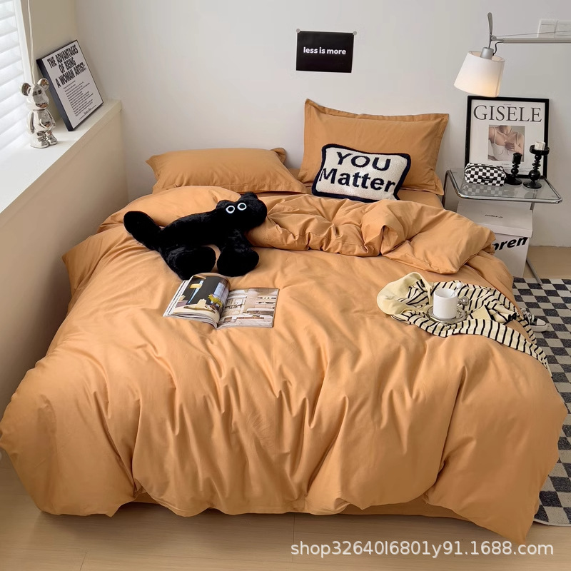 퓨어 코튼 솔리드 컬러 더블 스타일 4 피스 세트 학생 기숙사 퓨어 코튼 3 피스 세트 퀼트 커버 침구 심플 스타일스토어 가기