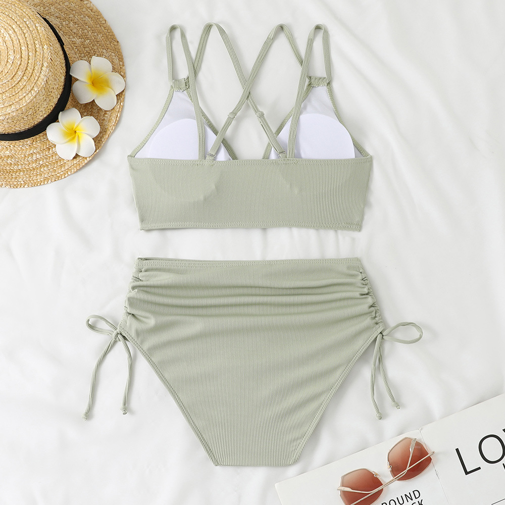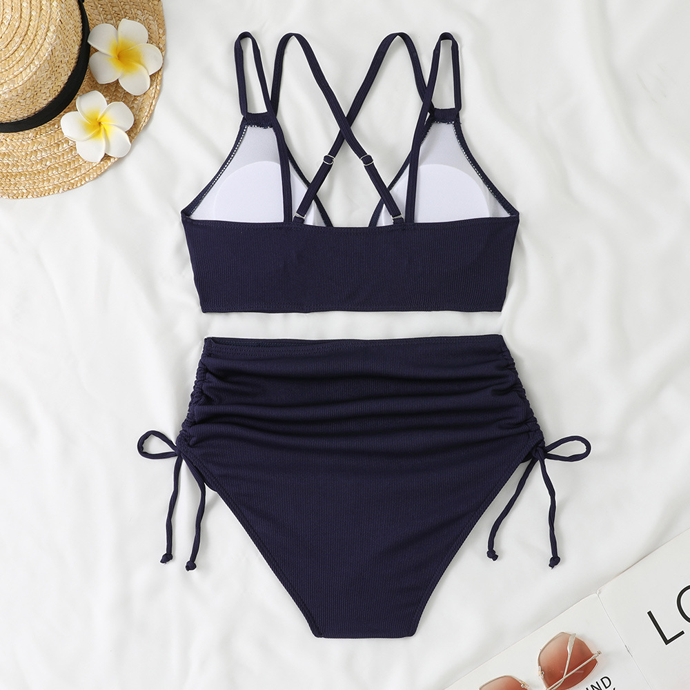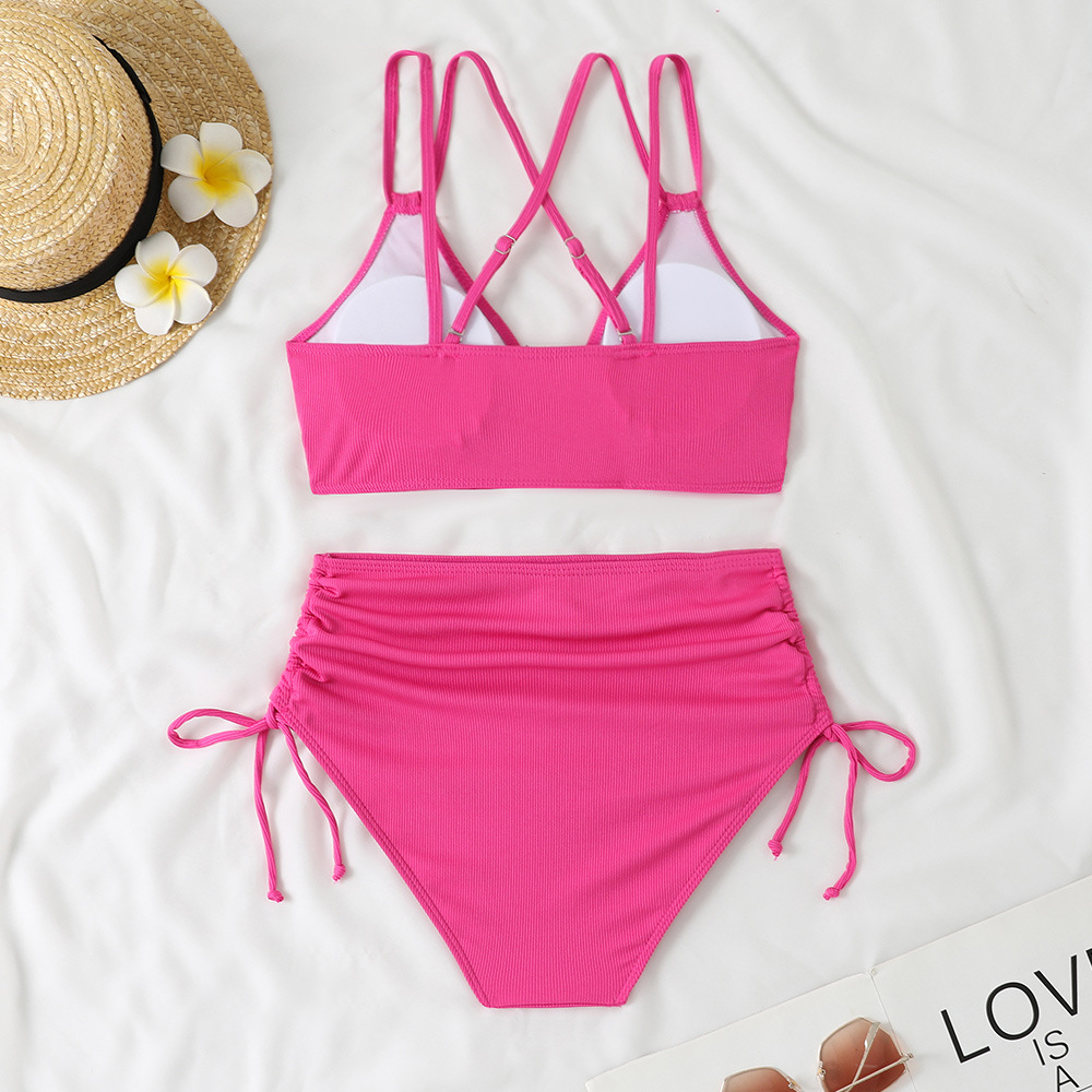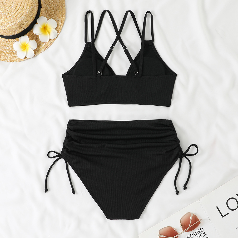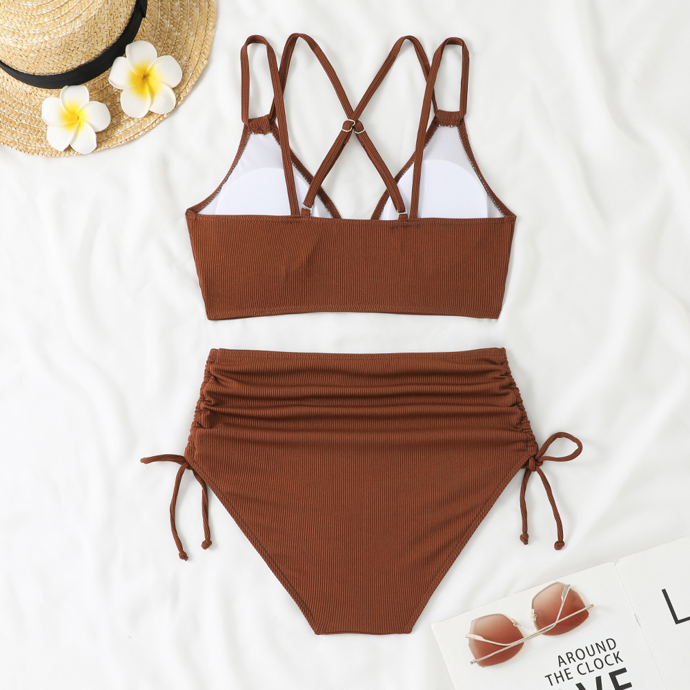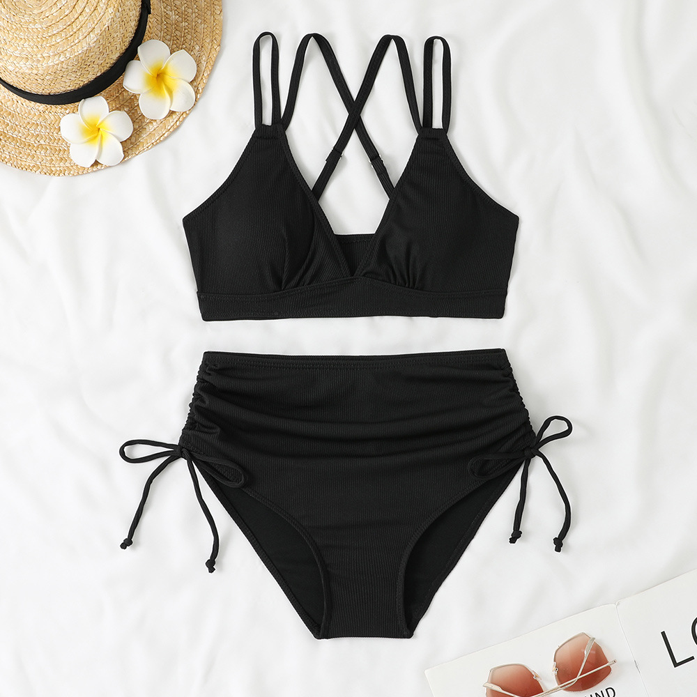 2025 크로스보더 비키니 더블 숄더 스트랩 섹시 솔리드 컬러 스플릿 수영복 하이웨이스트 푸쉬업 비치 리조트 수영복 서스펜더