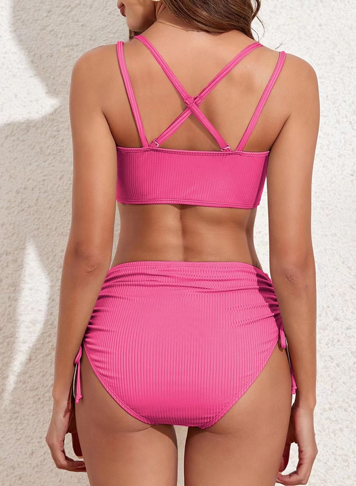 2025 크로스보더 비키니 더블 숄더 스트랩 섹시 솔리드 컬러 스플릿 수영복 하이웨이스트 푸쉬업 비치 리조트 수영복 서스펜더스토어 가기