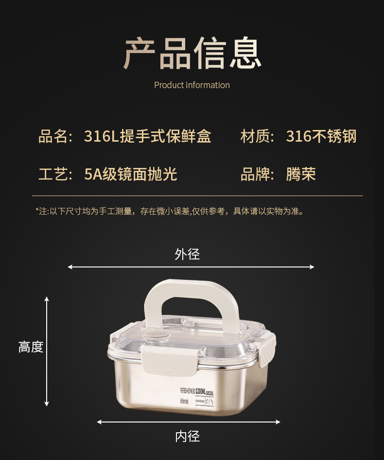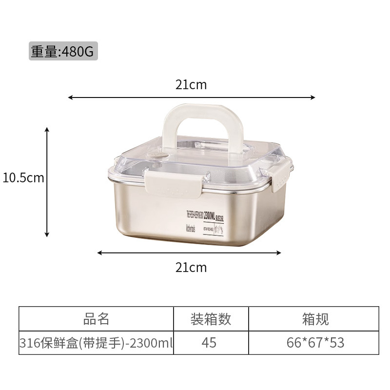 밀봉된 뚜껑이 있는 휴대용 316 스테인레스 스틸 크리스퍼, 포장 과일 도시락, 도시락, 냉장고 식품 보관함