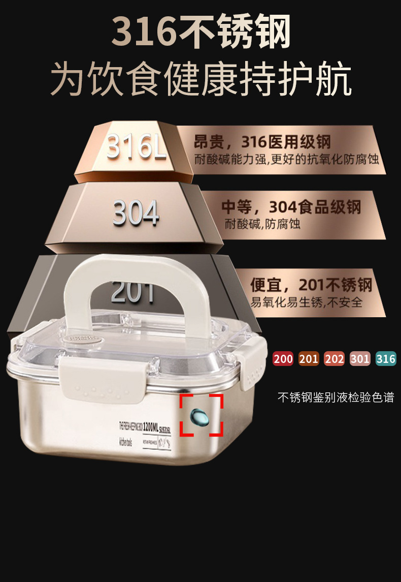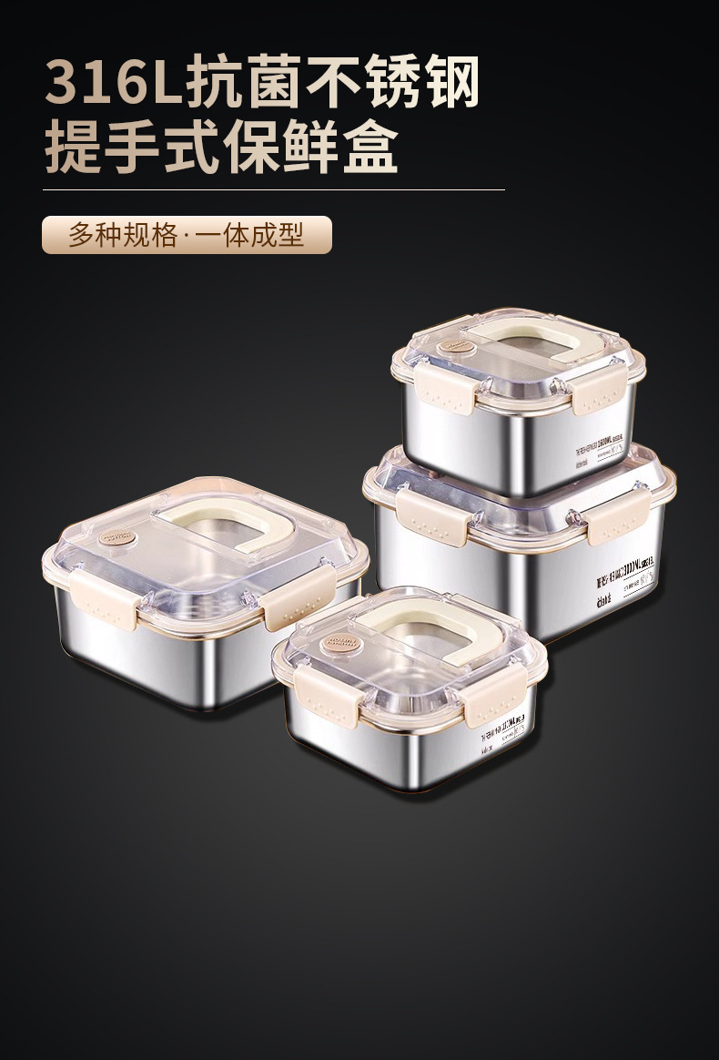 밀봉된 뚜껑이 있는 휴대용 316 스테인레스 스틸 크리스퍼, 포장 과일 도시락, 도시락, 냉장고 식품 보관함스토어 가기