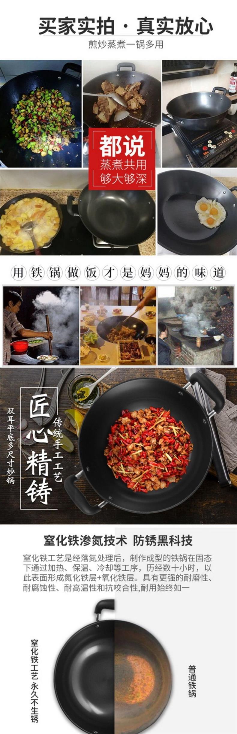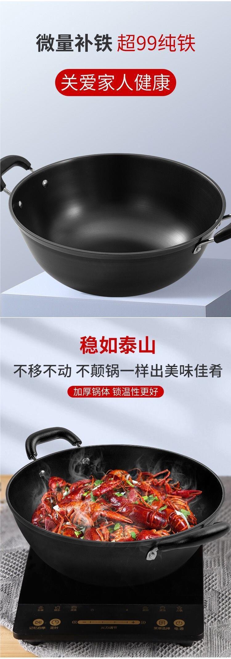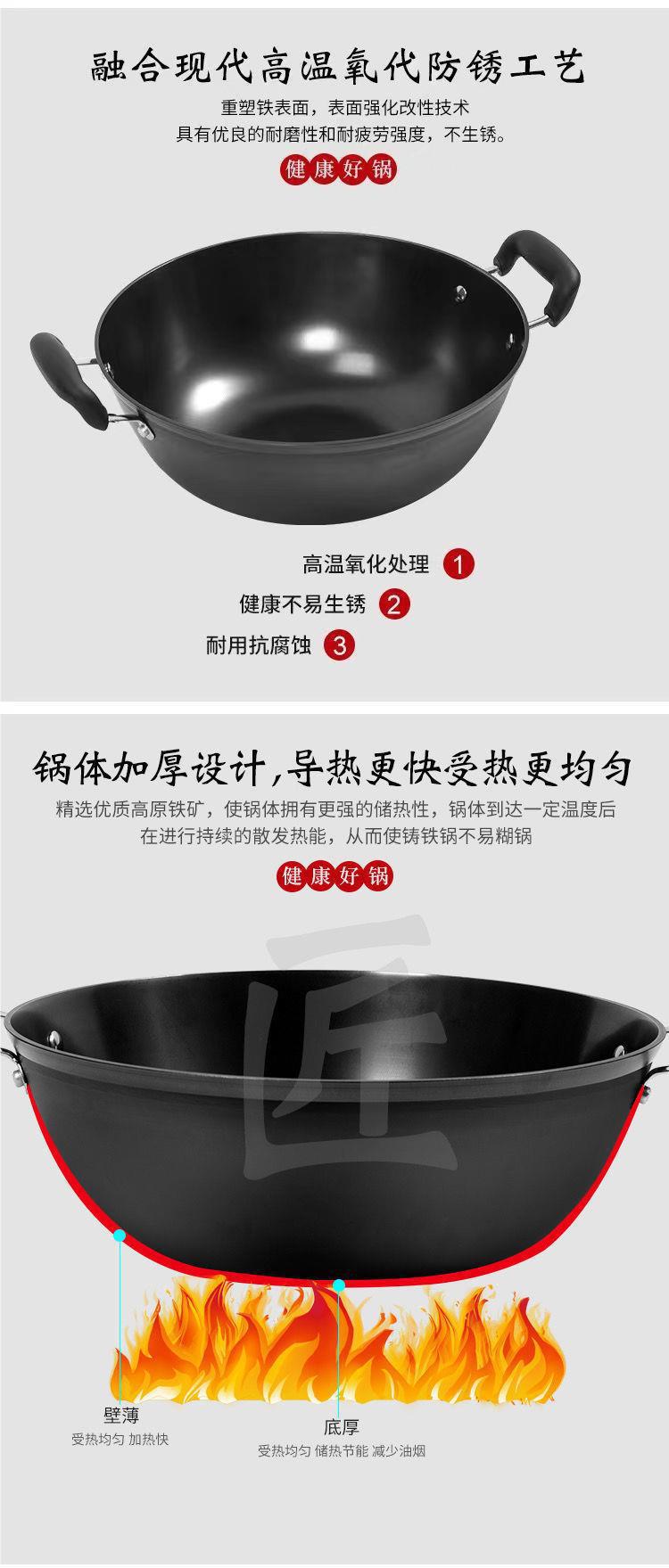 심화 된 스튜 팬 구식 아이언 팬 더블 이어 워크 가정용 주철 워크 플랫 바닥 추가 대형 비 스틱 팬 공장 도매스토어 가기