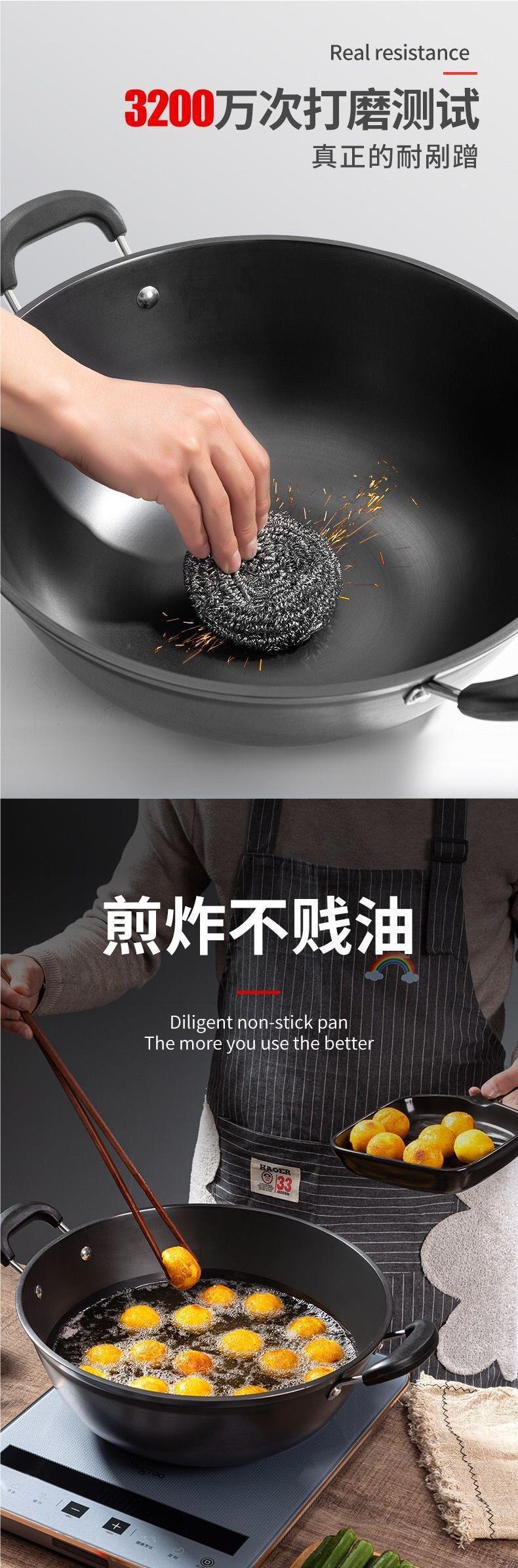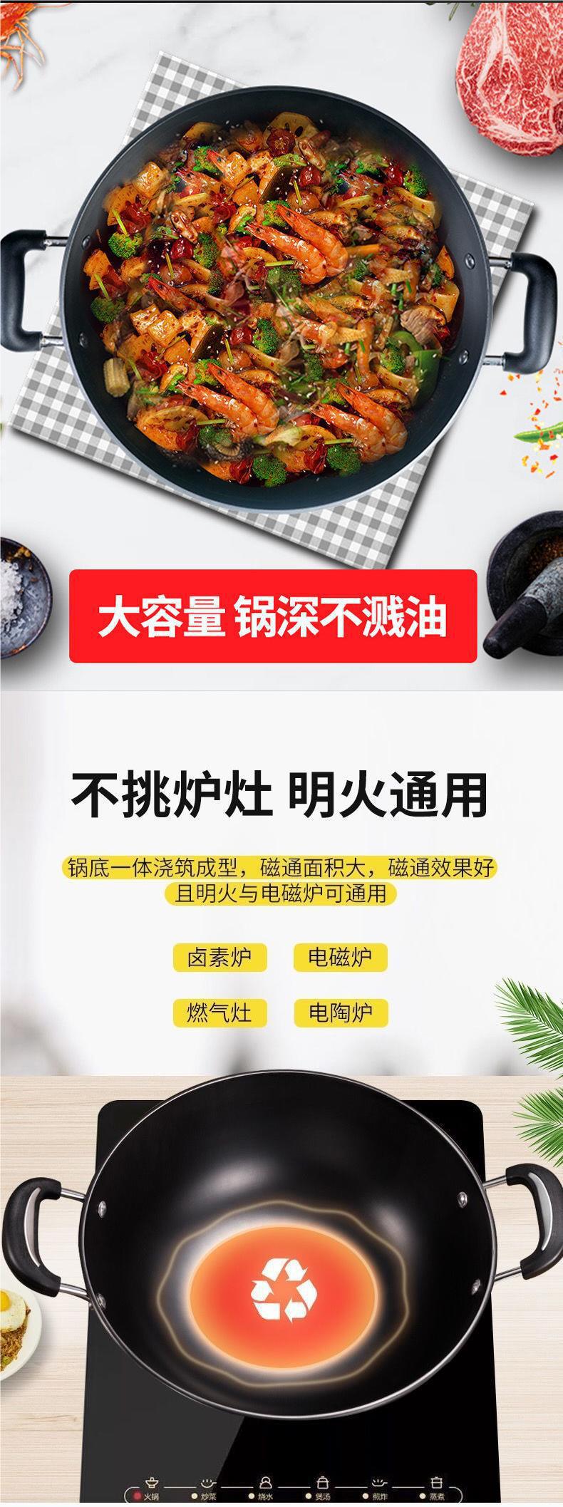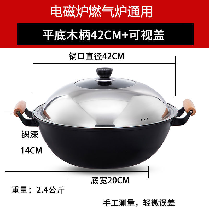 심화 된 스튜 팬 구식 아이언 팬 더블 이어 워크 가정용 주철 워크 플랫 바닥 추가 대형 비 스틱 팬 공장 도매스토어 가기