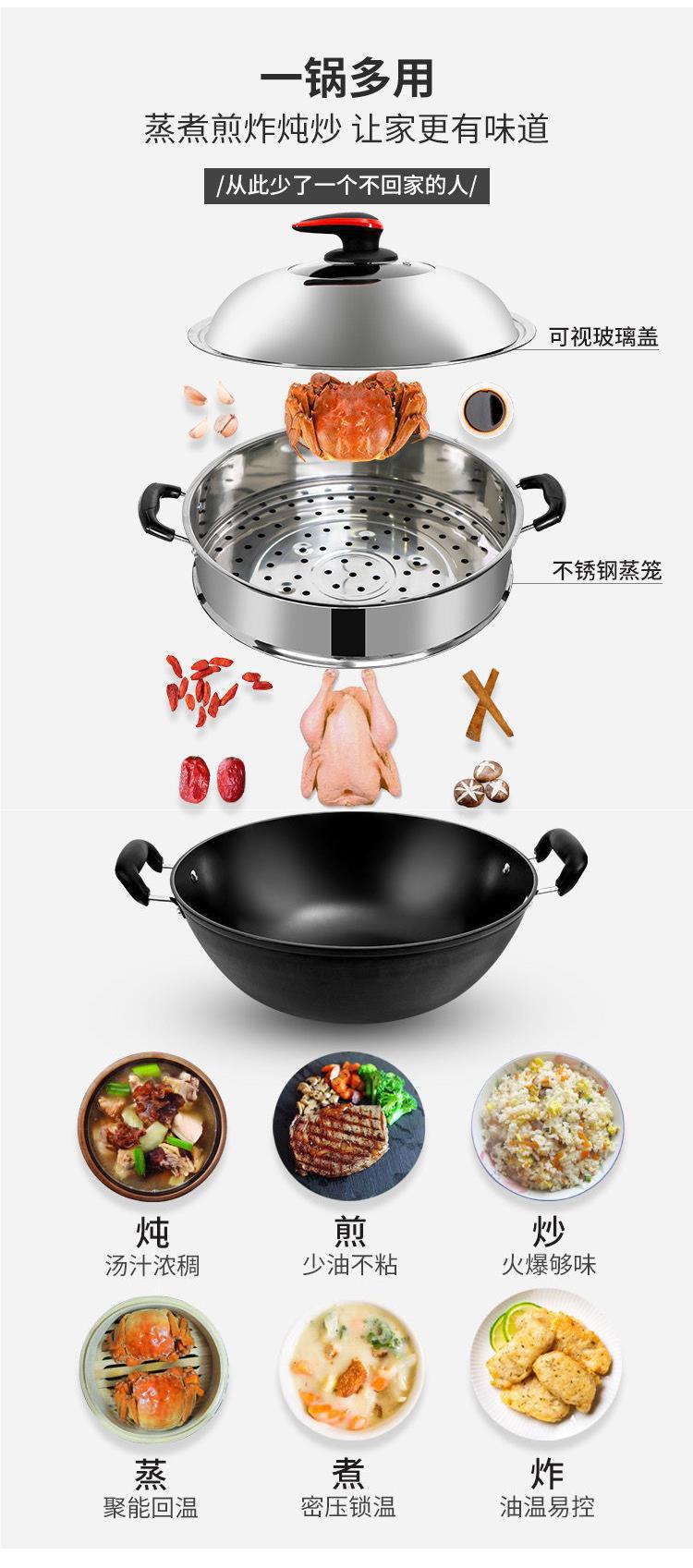 • 팬 + 눈에 보이는 뚜껑 + 대나무 찜통 [주걱 포함]