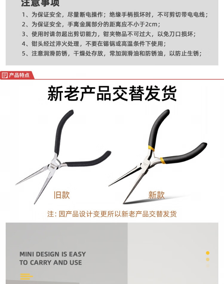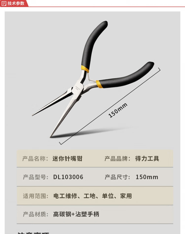 델리 DL103006 미니 바늘 노즐 6 인치 바늘 코 펜치 높은 탄소 강철 단조 미니 팁