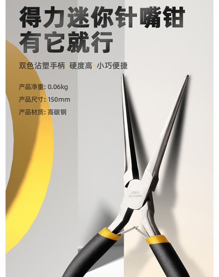 델리 DL103006 미니 바늘 노즐 6 인치 바늘 코 펜치 높은 탄소 강철 단조 미니 팁스토어 가기