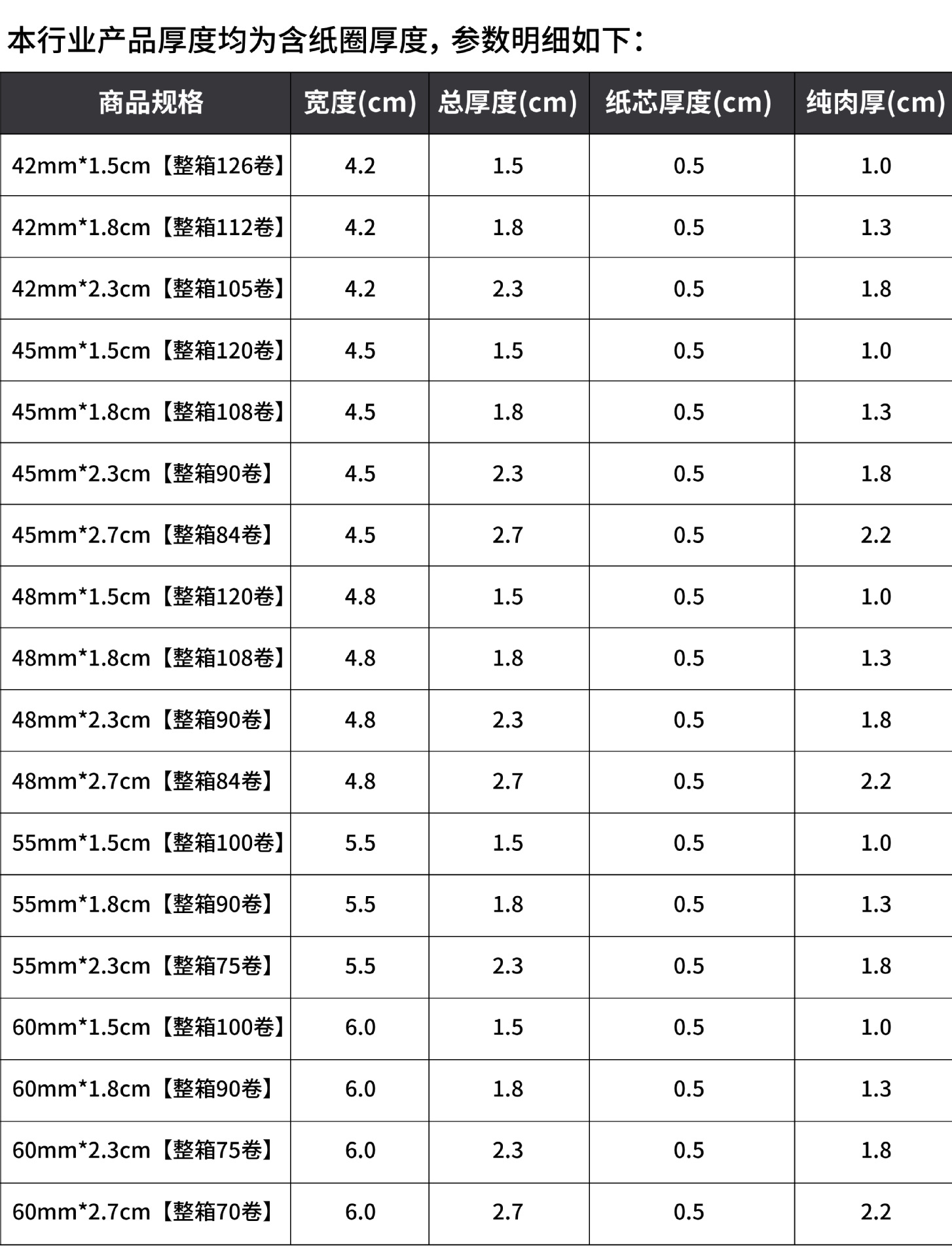 • 투명한 노란색(상자 실러가 포함된 전체 상자), 폭 42mm * 두께 1.5cm [상자 전체에 126롤]