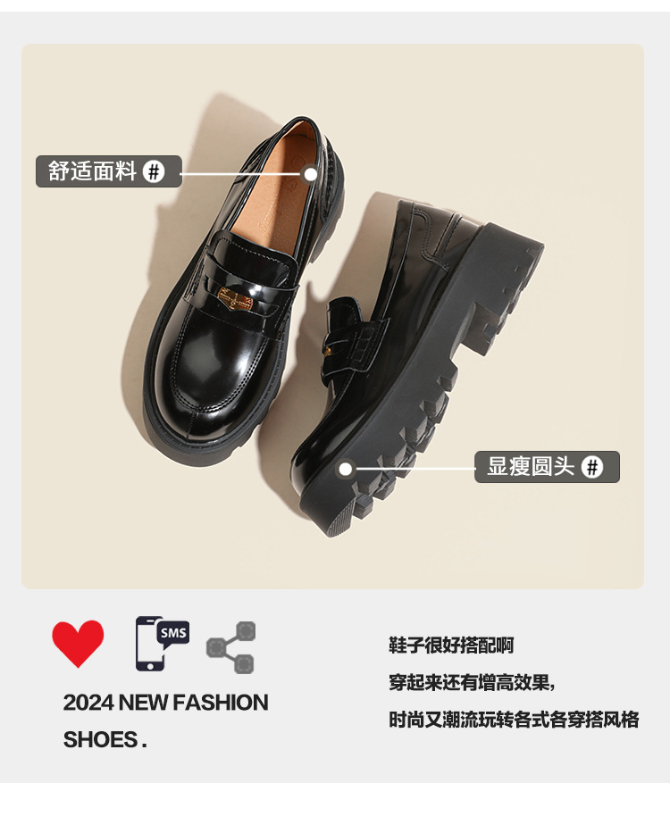 금화 로퍼 여성의 영국 바람 가을과 겨울 두꺼운 밑창 두꺼운 굽 신발, 페달 부드러운 통근 작은 가죽 신발 도매