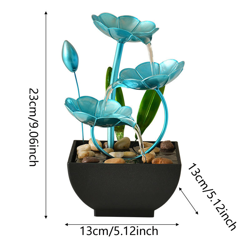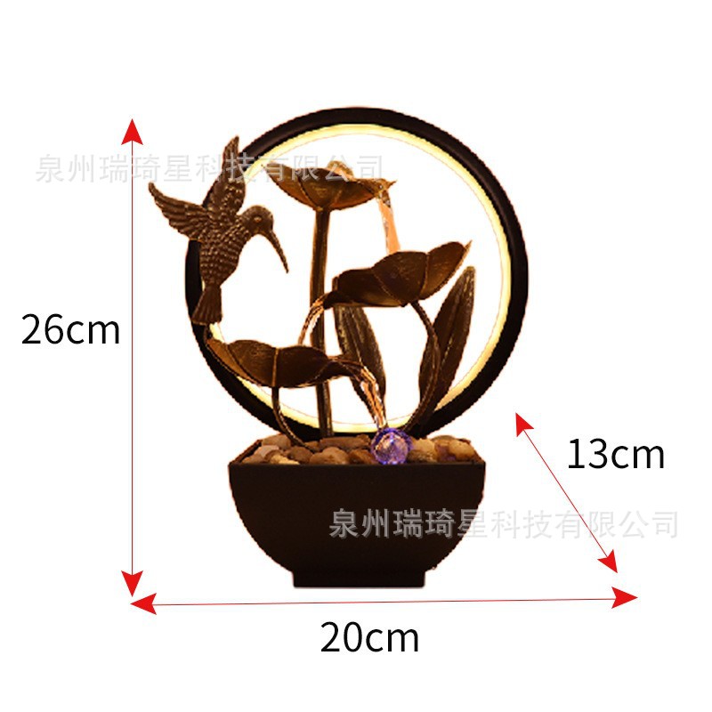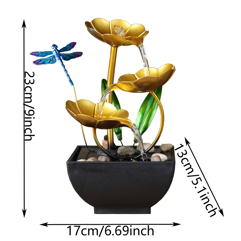 행운의 풍수 장식품, 순환하는 물, 탁상용 철제 장식품, 흐르는 물 장식품, 라이트 링이 있는 황금색 녹색 연잎