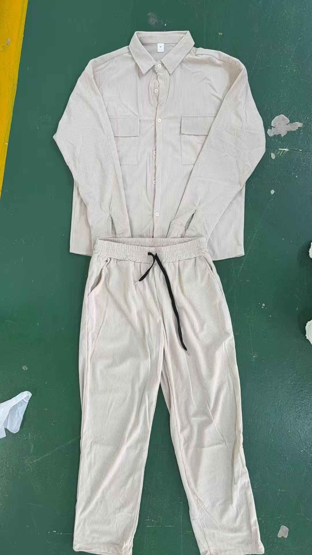 2025 국경 간 봄 새로운 유럽과 미국 남성 코듀로이 긴 소매 옷깃 셔츠 바지 매일 캐주얼 세트스토어 가기