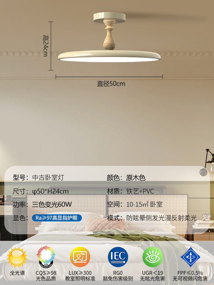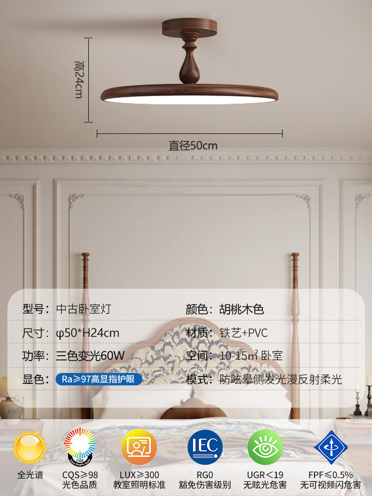 전체 스펙트럼 프랑스 침실 중간 고대 천장 램프 조용한 스타일 복고풍 방 연구 어린이 방 LED 눈 보호 램프스토어 가기