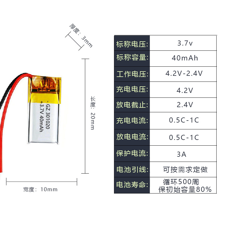 리튬 배터리 603035 제조업체 도매 600mA 디지털 전자 미용 기기 장난감 LED 조명 폴리머 리튬 배터리
