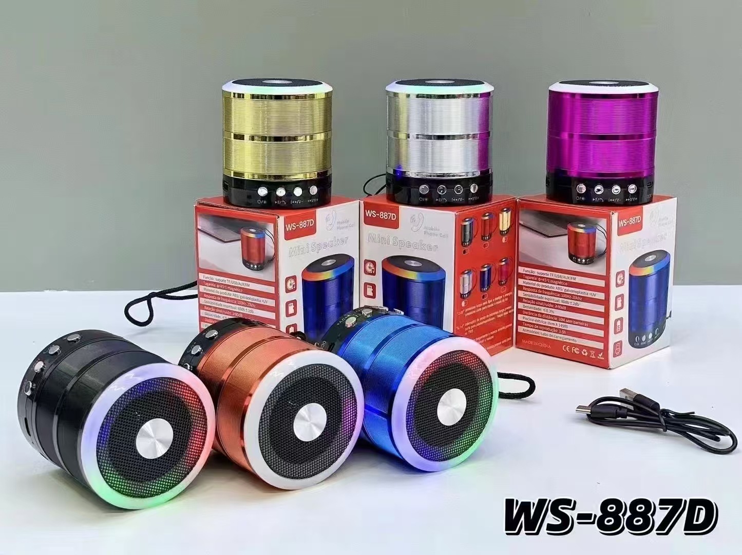 새로운 실행 볼륨 WS-887D 블루투스 스피커 무선 서브 우퍼 휴대용 휴대용 끈 동적 조명 사운드스토어 가기