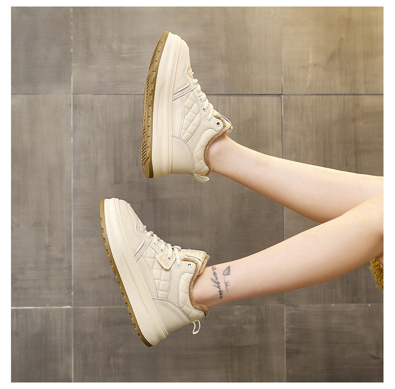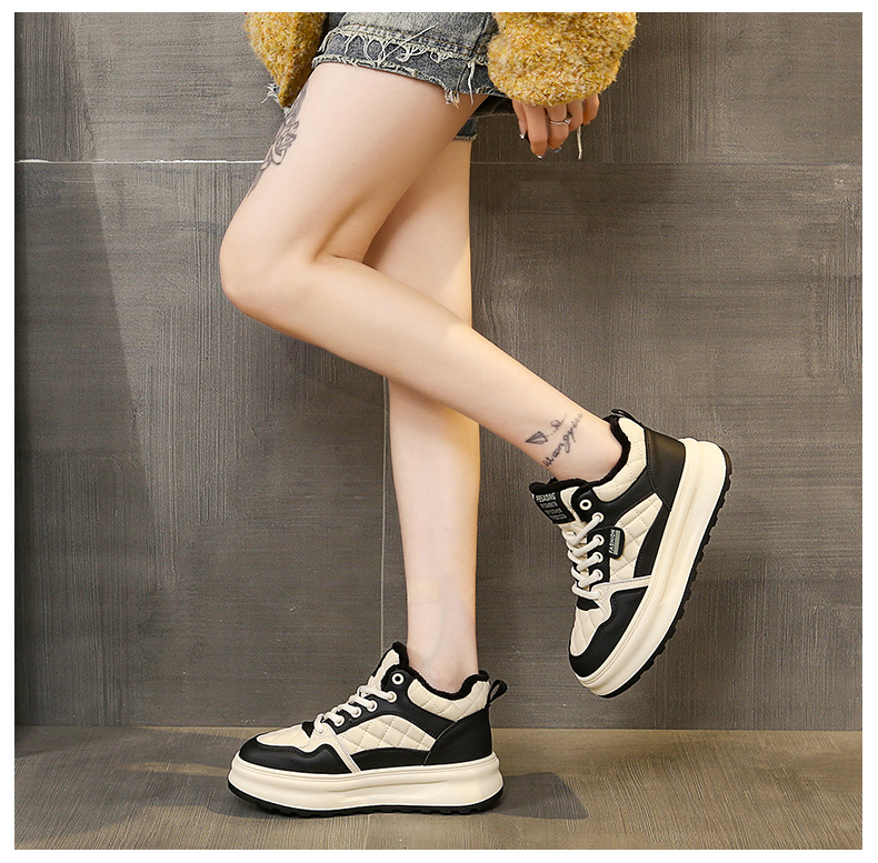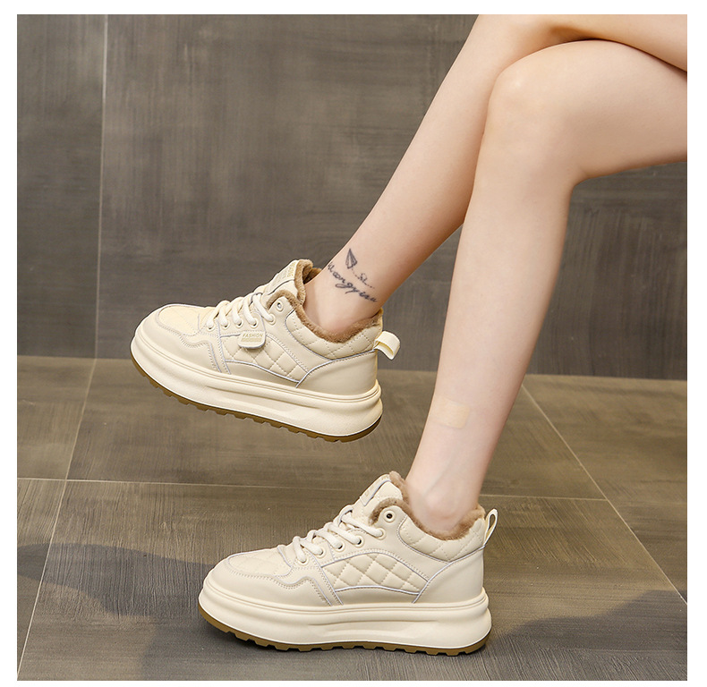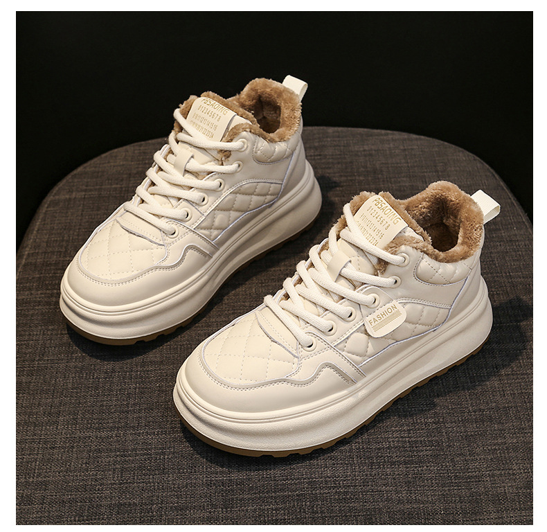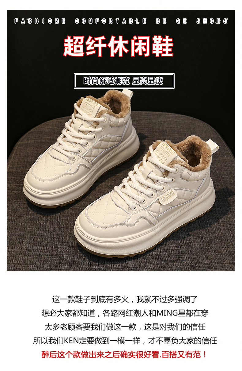 두꺼운 밑창 기모 하이 탑 캐주얼 신발 여성의 겨울 새로운 올매치 편안한 따뜻한 운동화 스니커즈 따뜻한 코튼 슈즈
