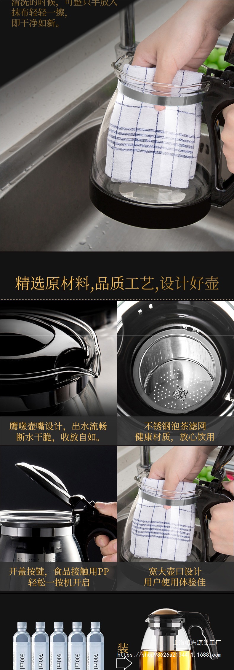 AZA3 주전자 유리 건강 보존 주전자 가정용 대용량 주전자 내열 필터 꽃 주전자 투명한 작은 차 세트