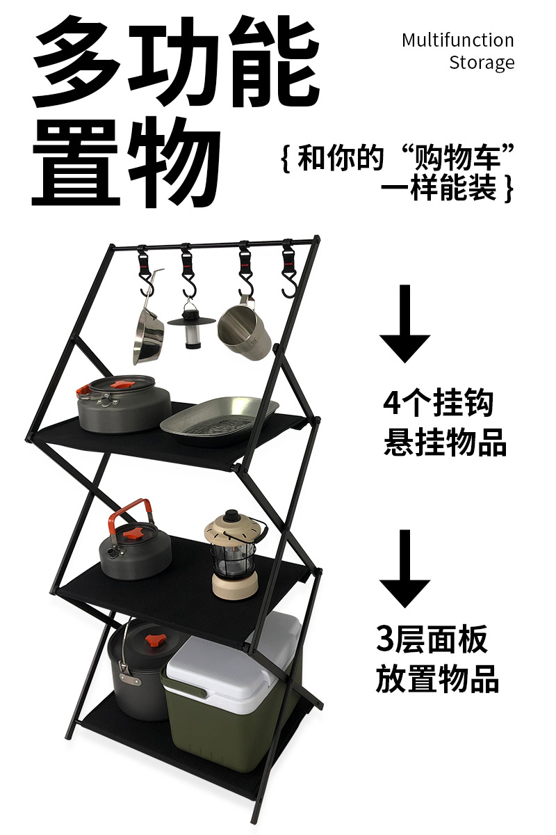 야외 알루미늄 합금 접이식 이중 목적 igt 캠핑 식탁 3층 다기능 보관함 접이식스토어 가기