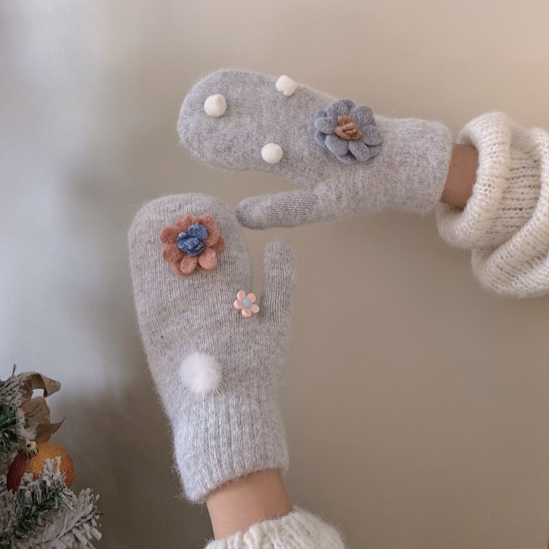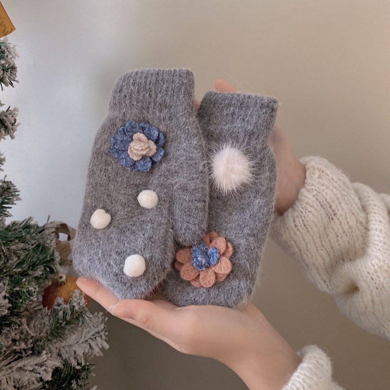 DIY 만화 학생 두꺼운 더블 레이어 귀여운 꽃 한국 스타일 따뜻한 승마 장갑 여성을위한 가을 겨울스토어 가기