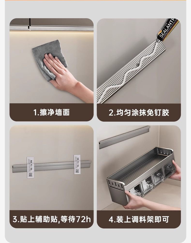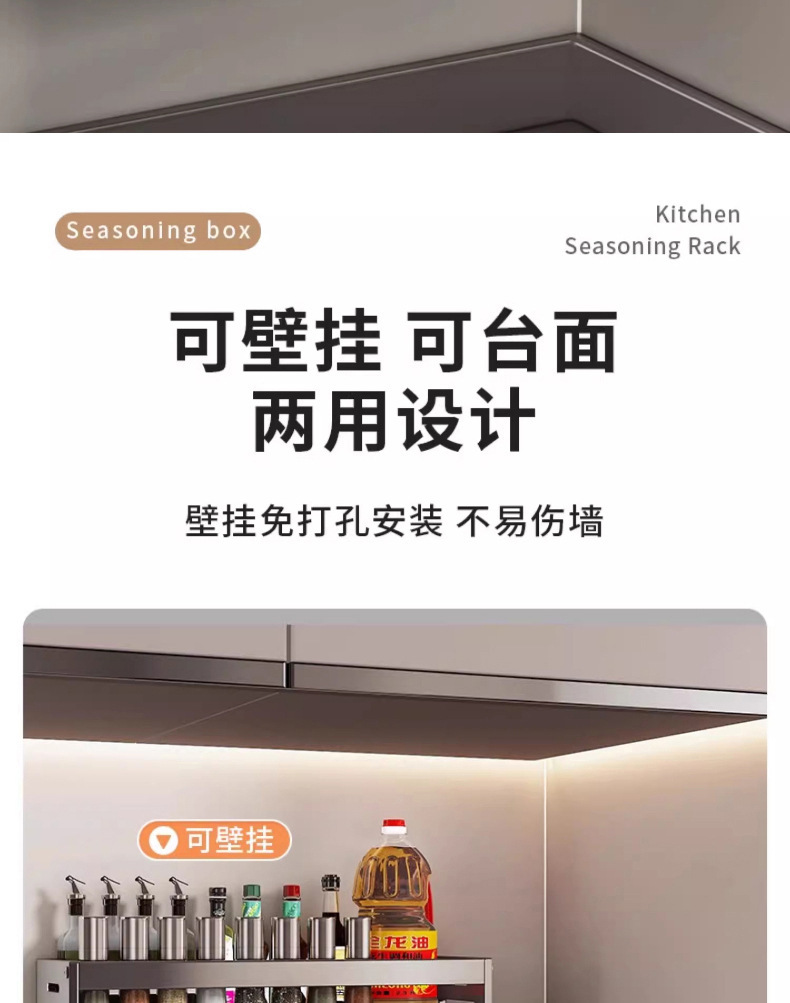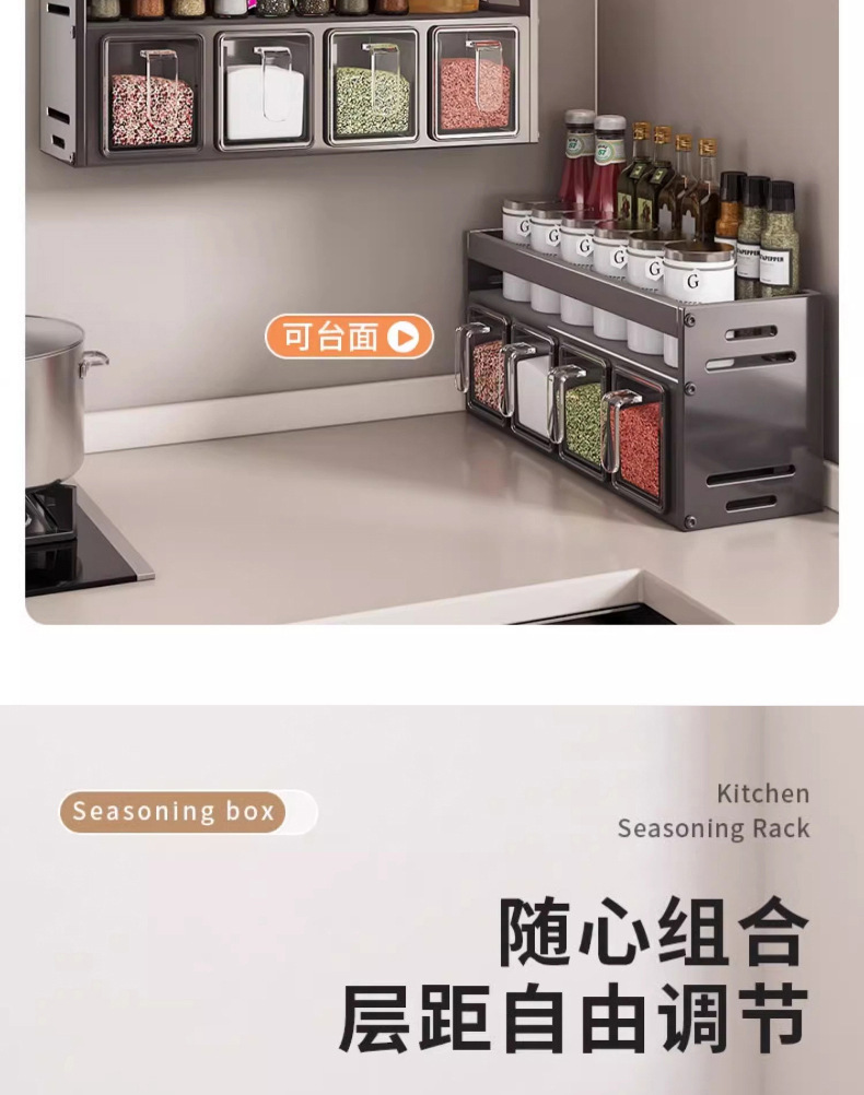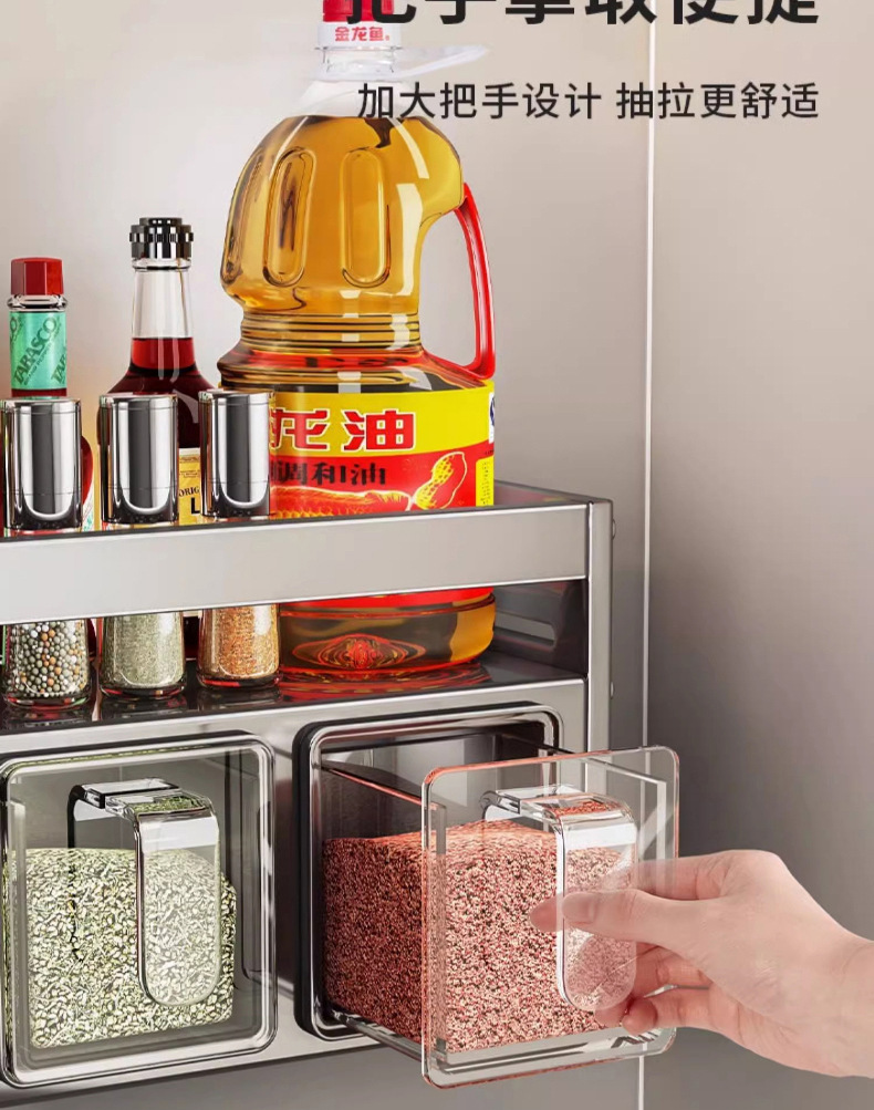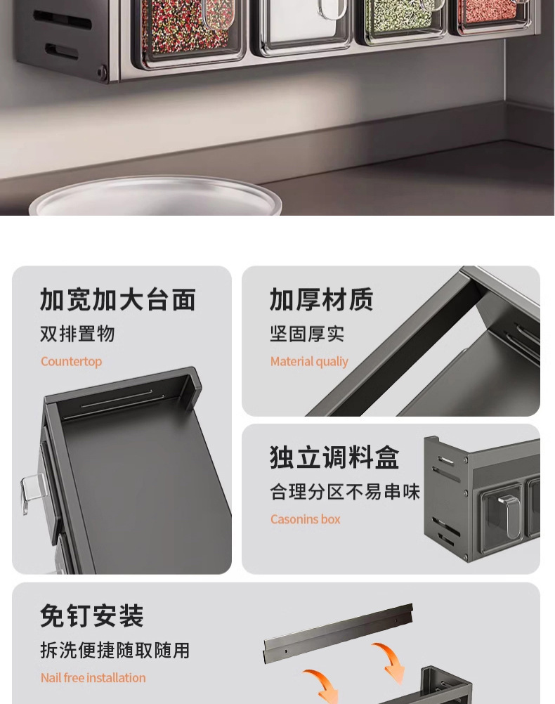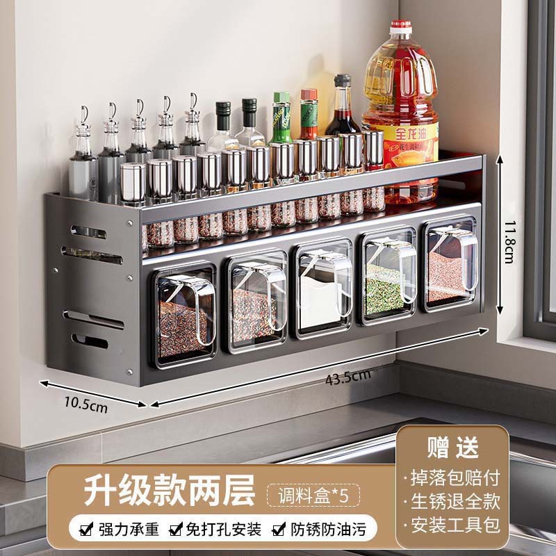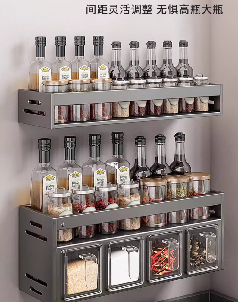 주방 조미료 상자 수납 선반 무타공 벽걸이 다기능 조미료 병 세트 수납 선반 주방 수납