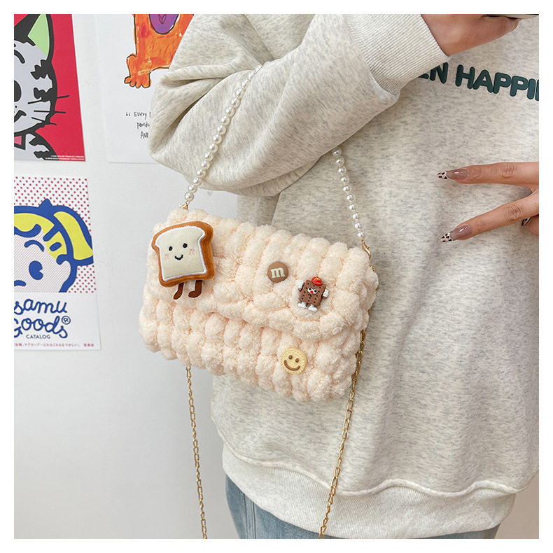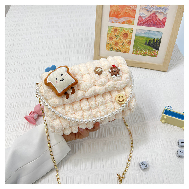• 밀키 살구색 [작은 토스트] 소재 팩 + 체인 + 진주 핸드백