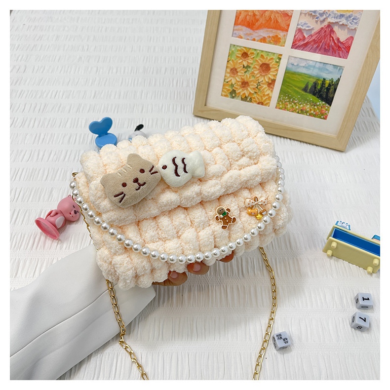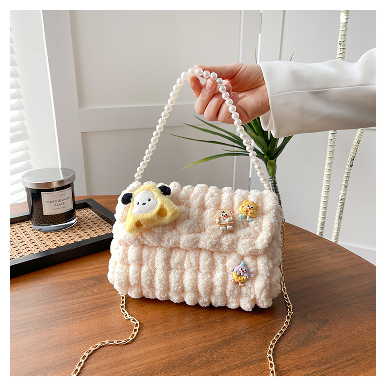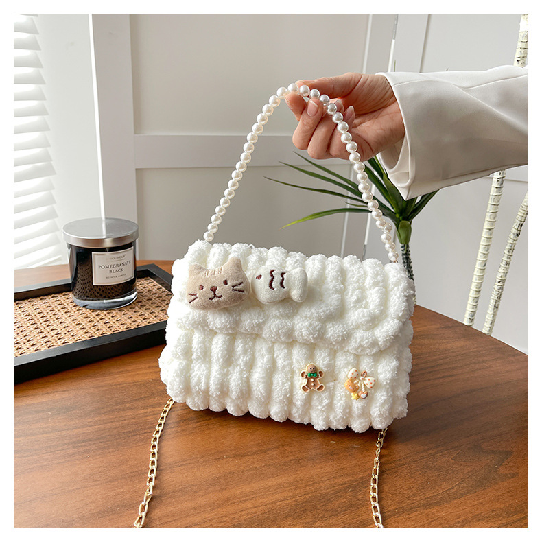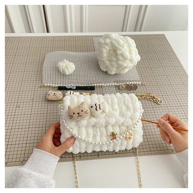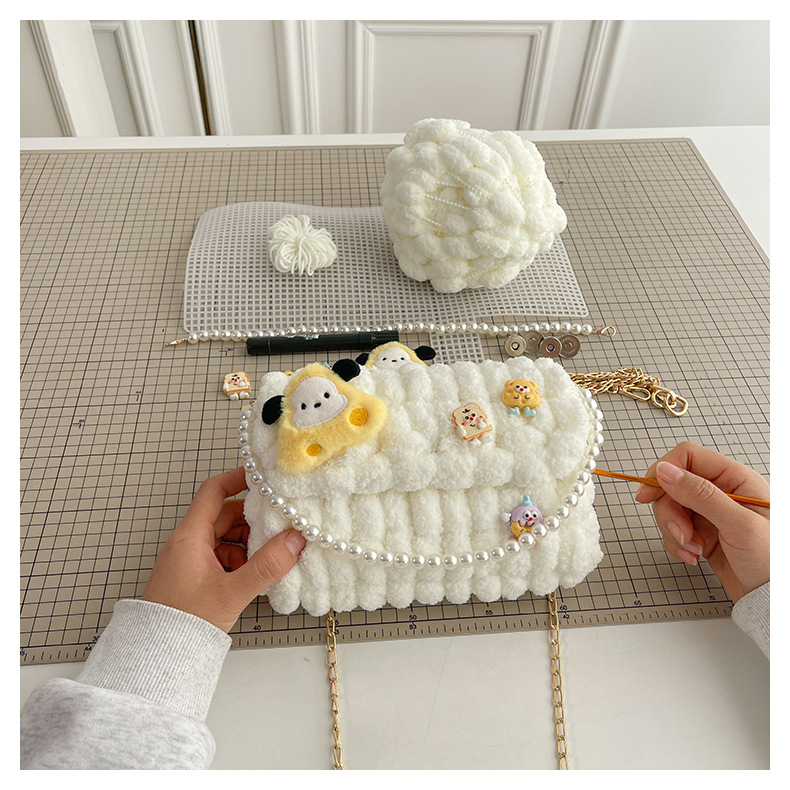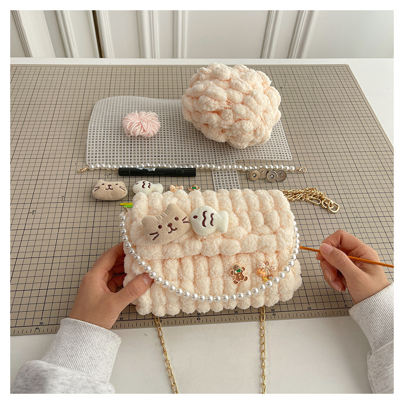 수제 크리스마스 수제 짠 가방 DIY 소재 가방 울 휴대용 메신저 가방 여자 친구 선물 완제품