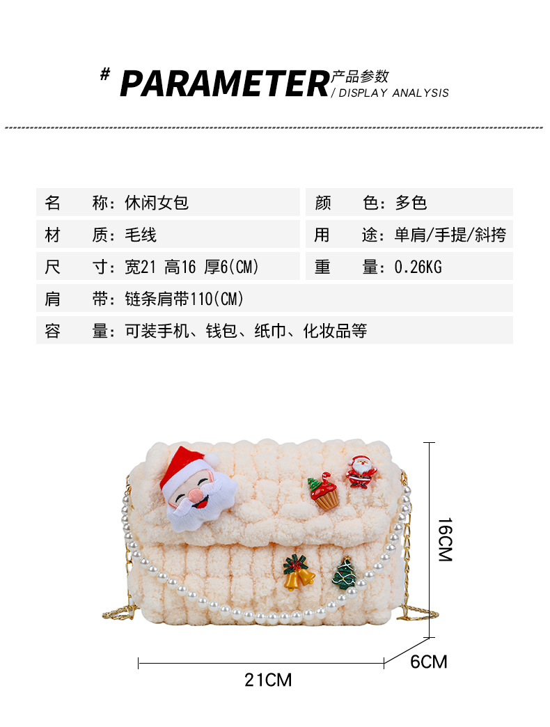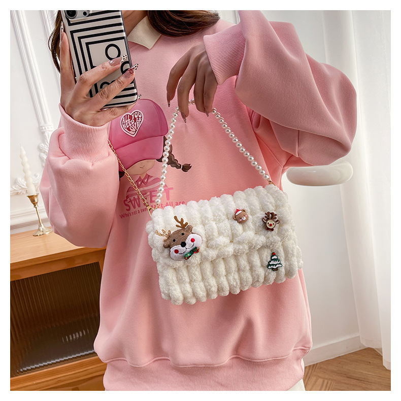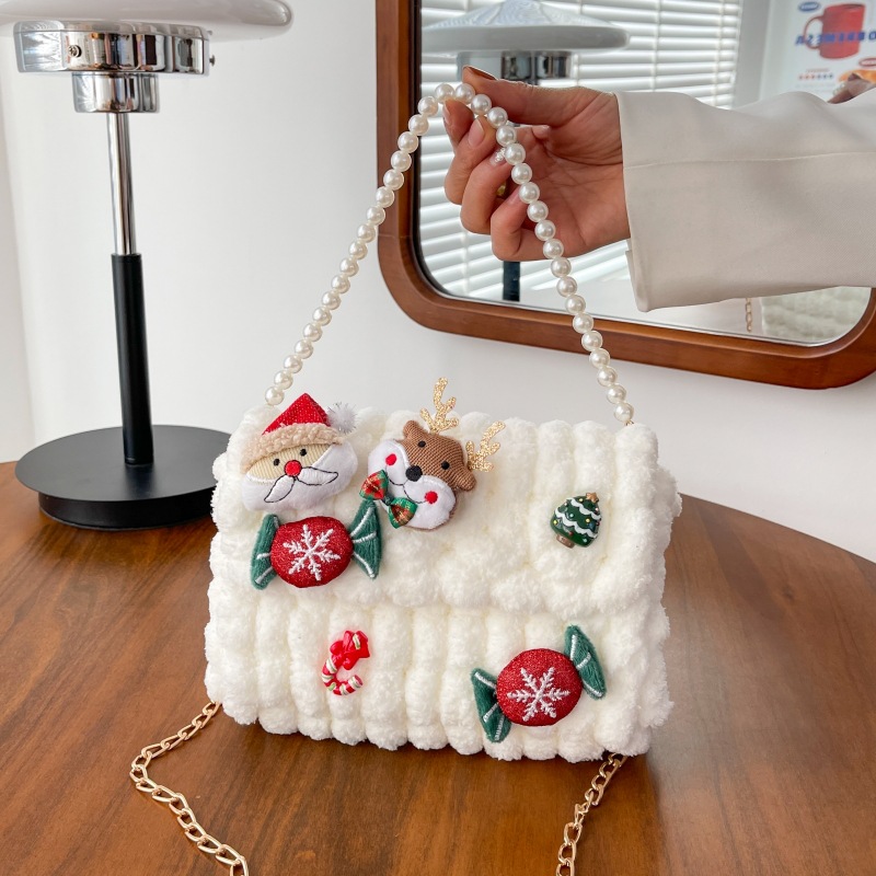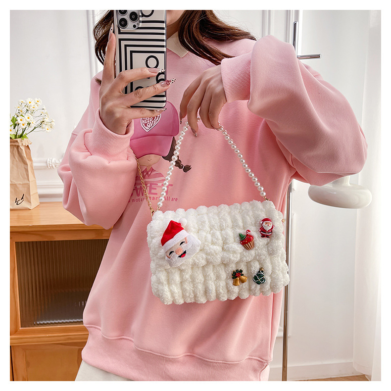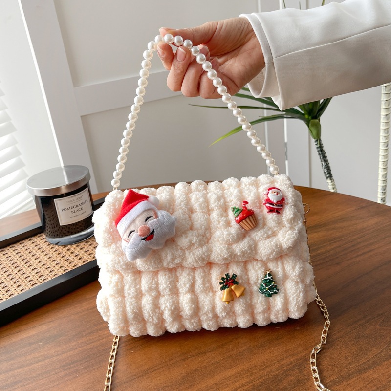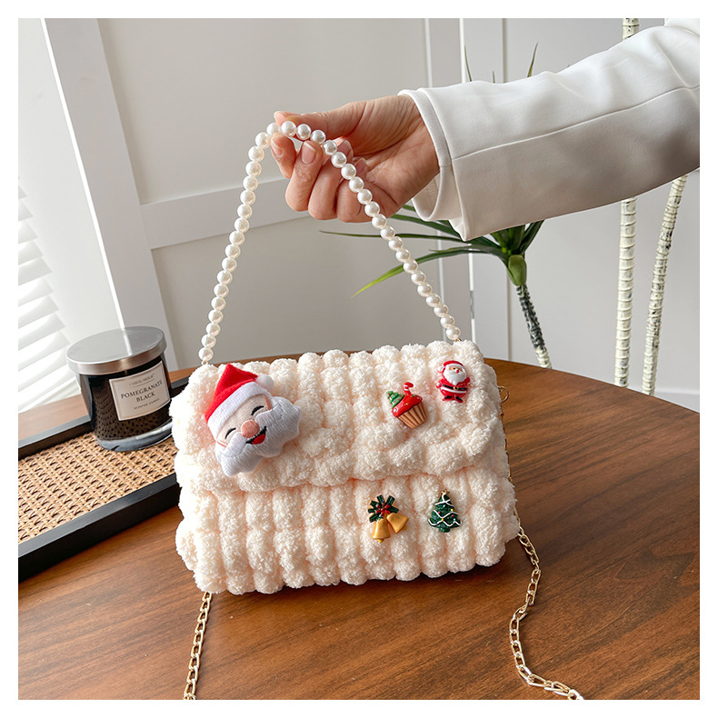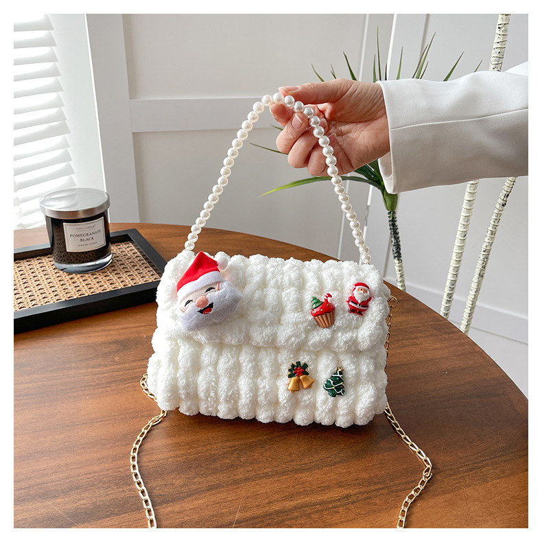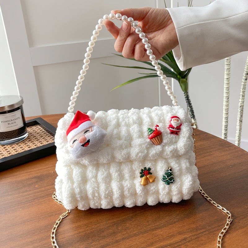 • 화이트 [산타클로스] 소재 패키지 + 튜토리얼 + 체인 + 진주 핸드백