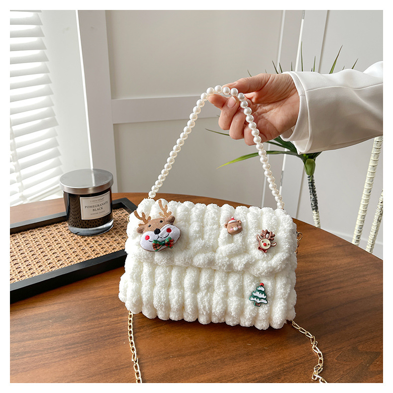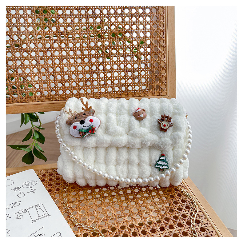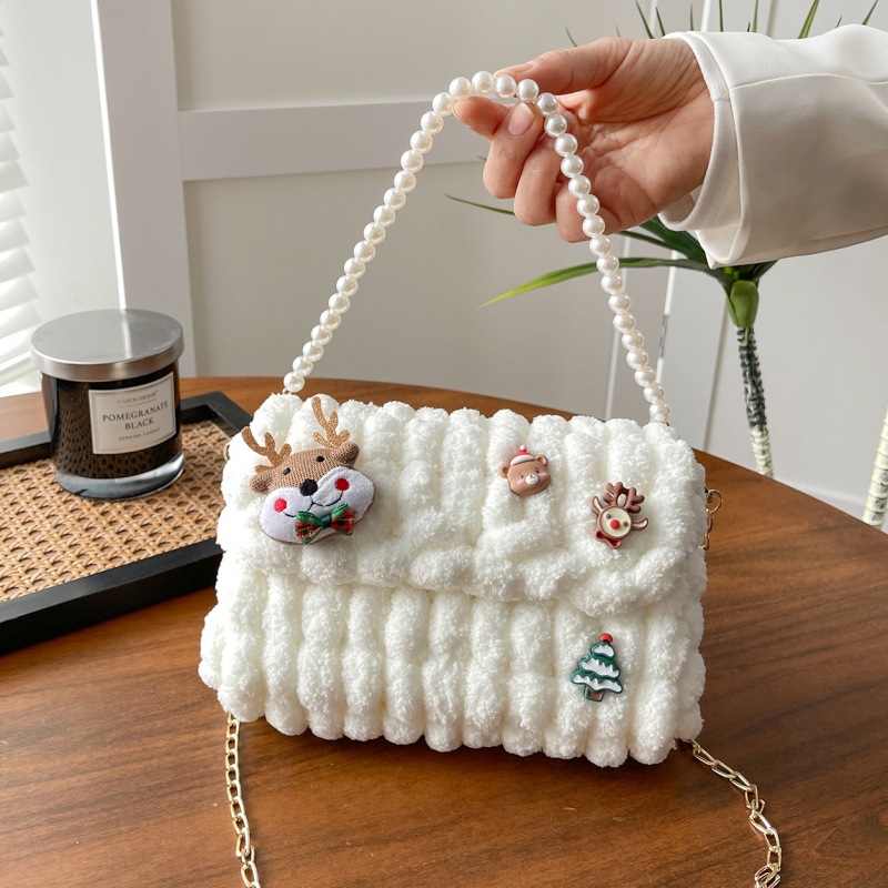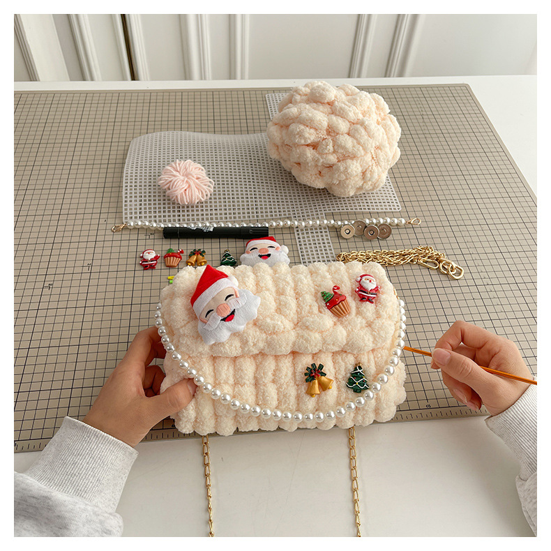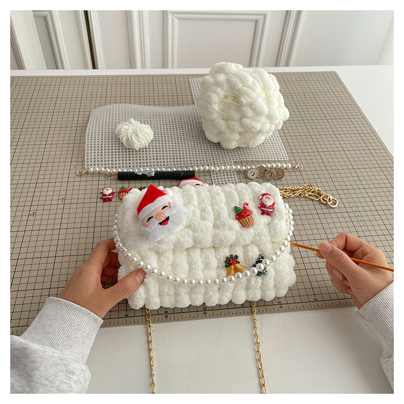 수제 크리스마스 수제 짠 가방 DIY 소재 가방 울 휴대용 메신저 가방 여자 친구 선물 완제품스토어 가기