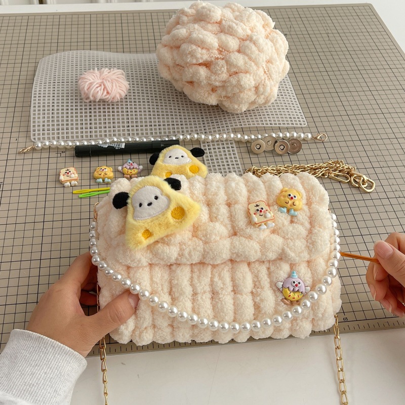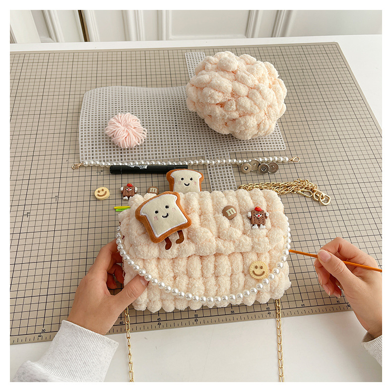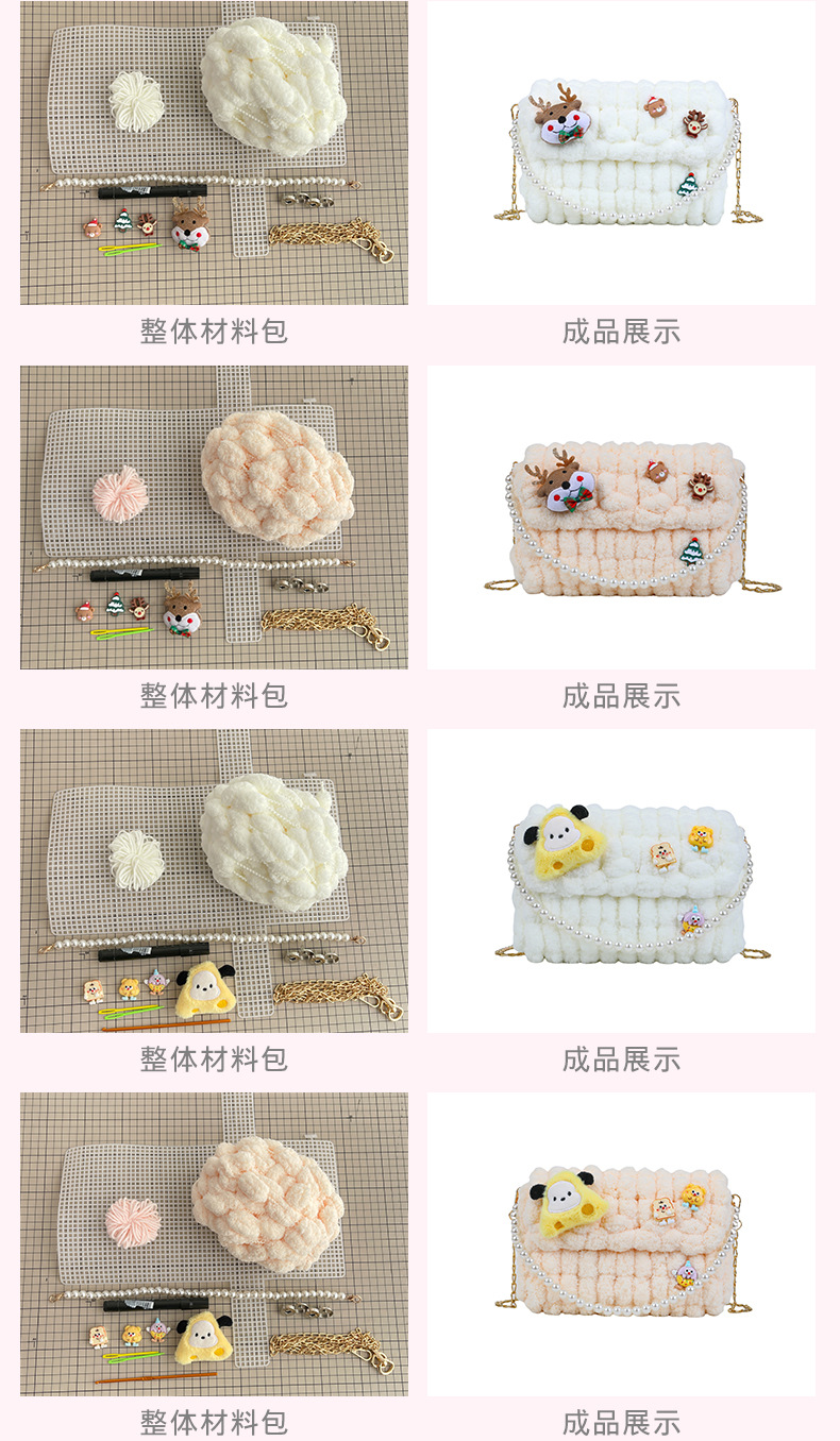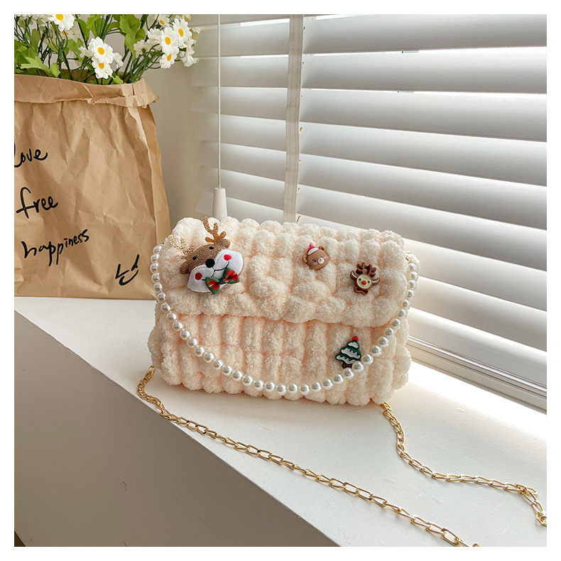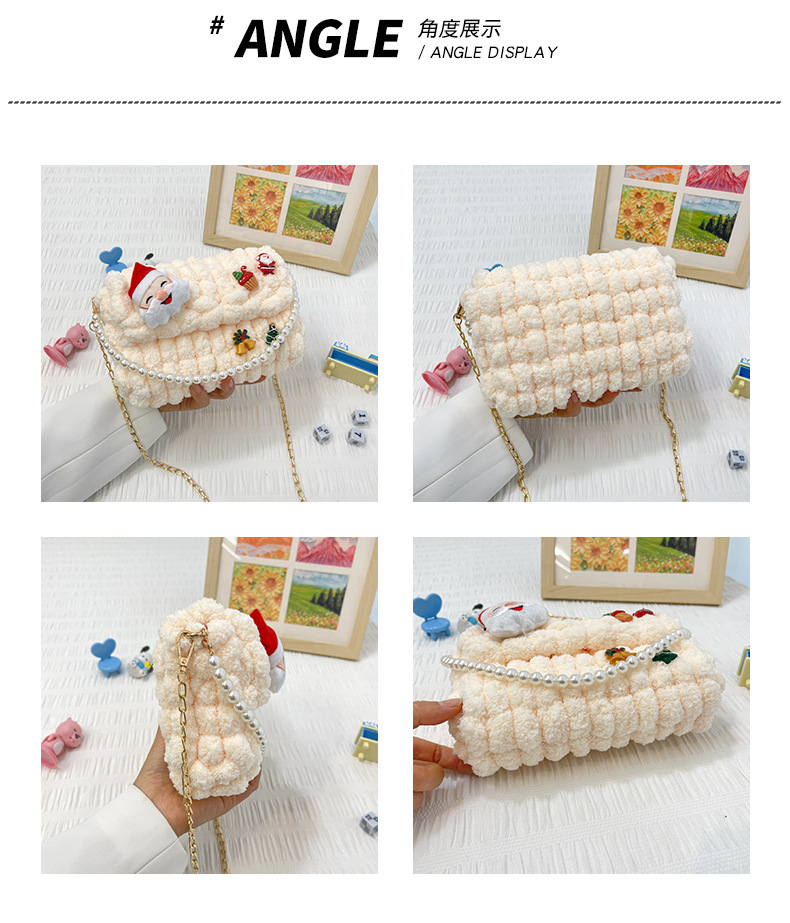 수제 크리스마스 수제 짠 가방 DIY 소재 가방 울 휴대용 메신저 가방 여자 친구 선물 완제품스토어 가기