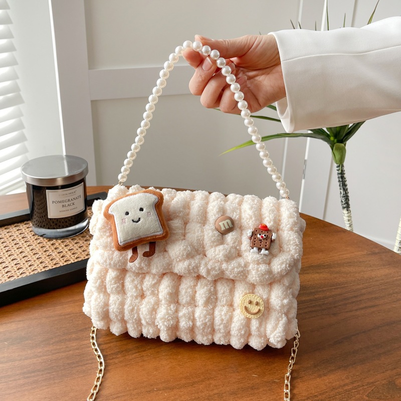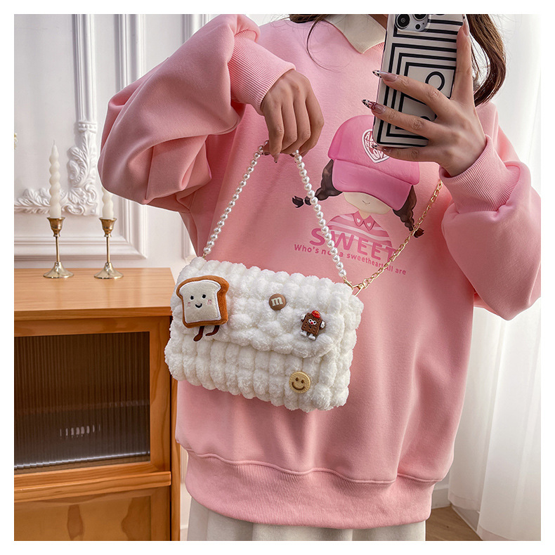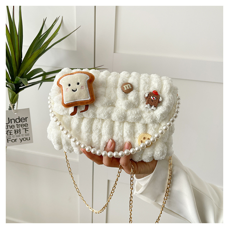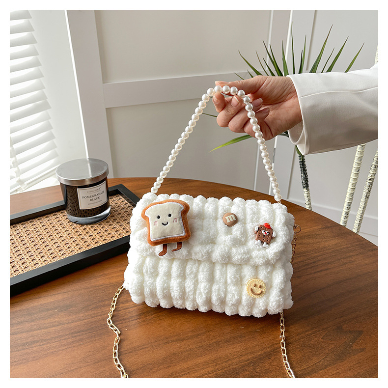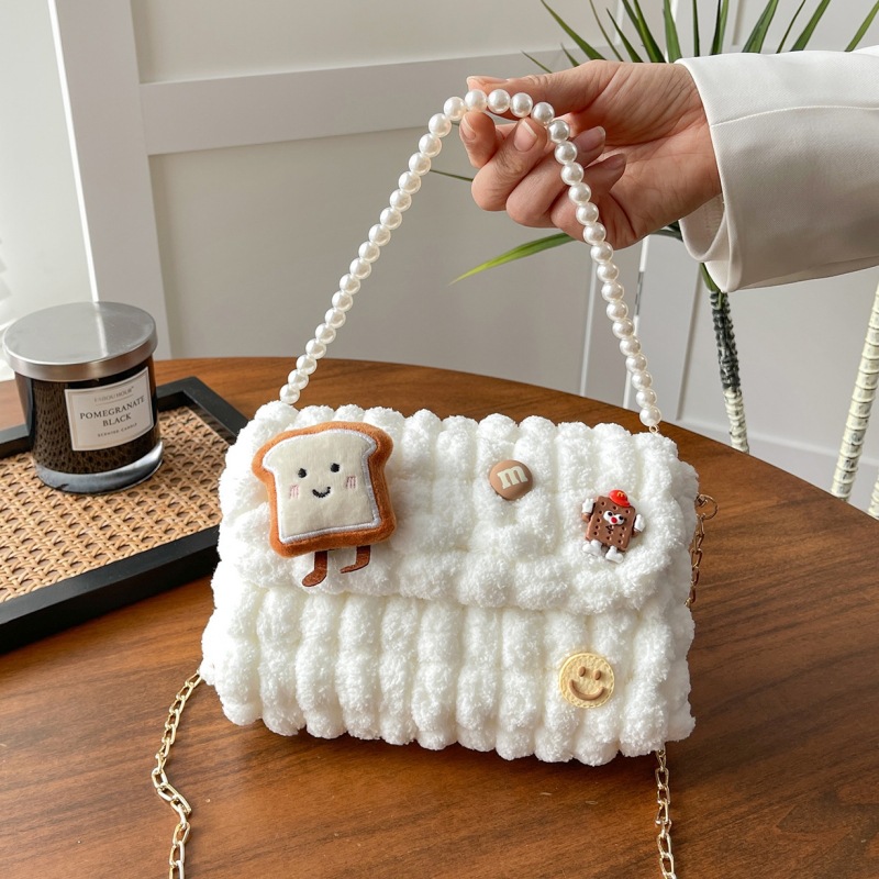 • 화이트 [작은 토스트] 소재 팩 + 체인 + 진주 핸드백