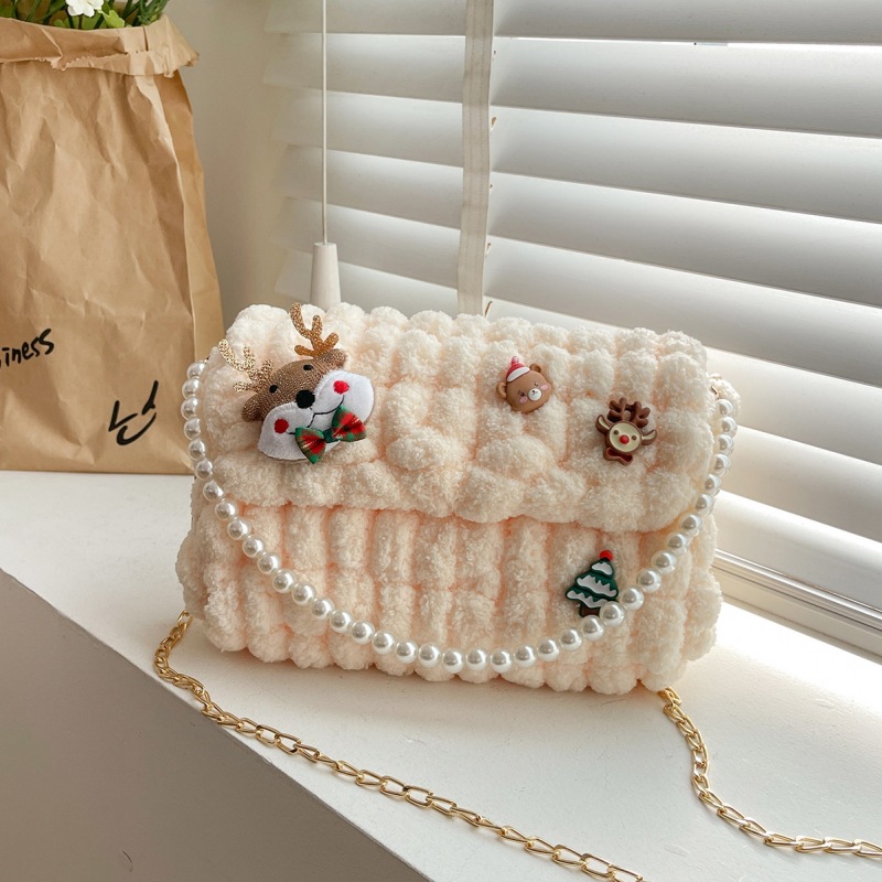 • 밀키 살구색 [산타클로스] 소재 패키지 + 튜토리얼 + 체인 + 진주 핸드백