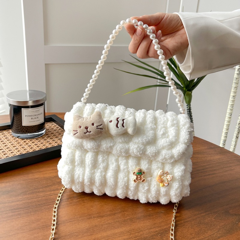 • 화이트 [고양이피쉬] 소재팩 + 체인 + 진주 핸드백