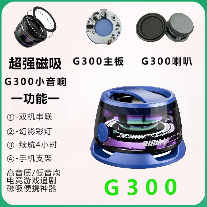 새로운 국경 G300 휴대 전화 블루투스 자기 작은 오디오 휴대용 무선 야외 작은 오디오 다채로운 분위기 빛