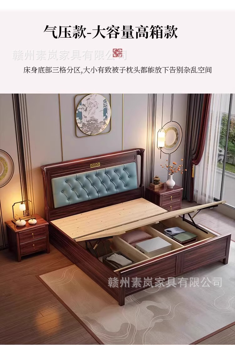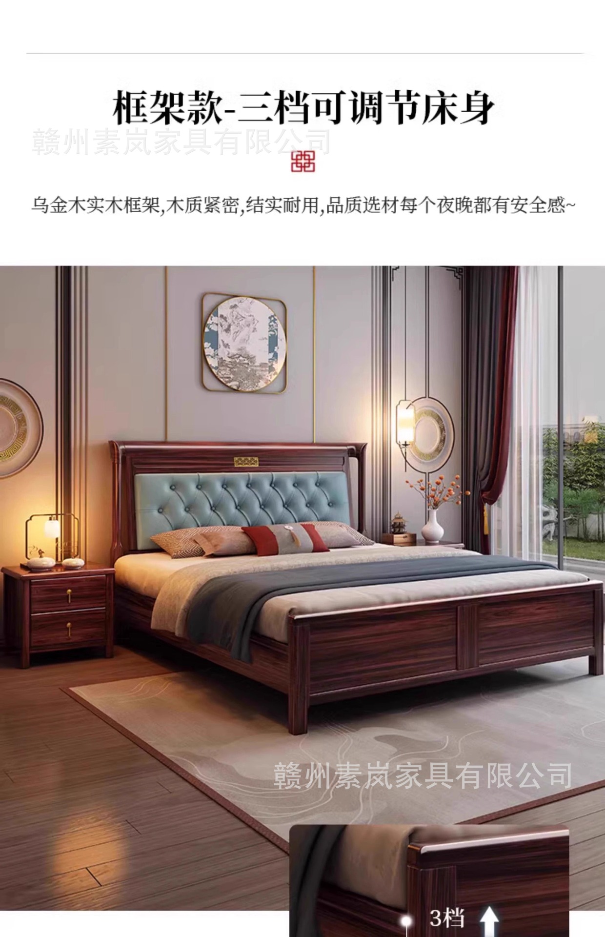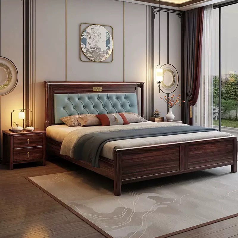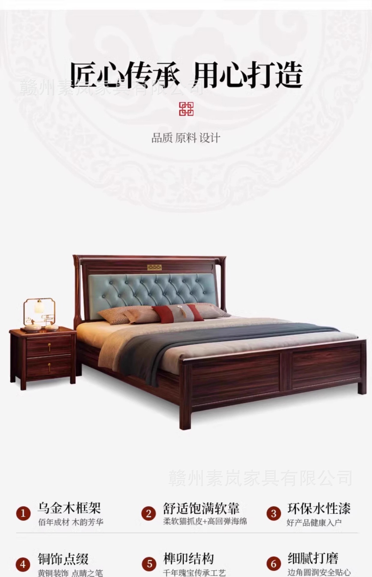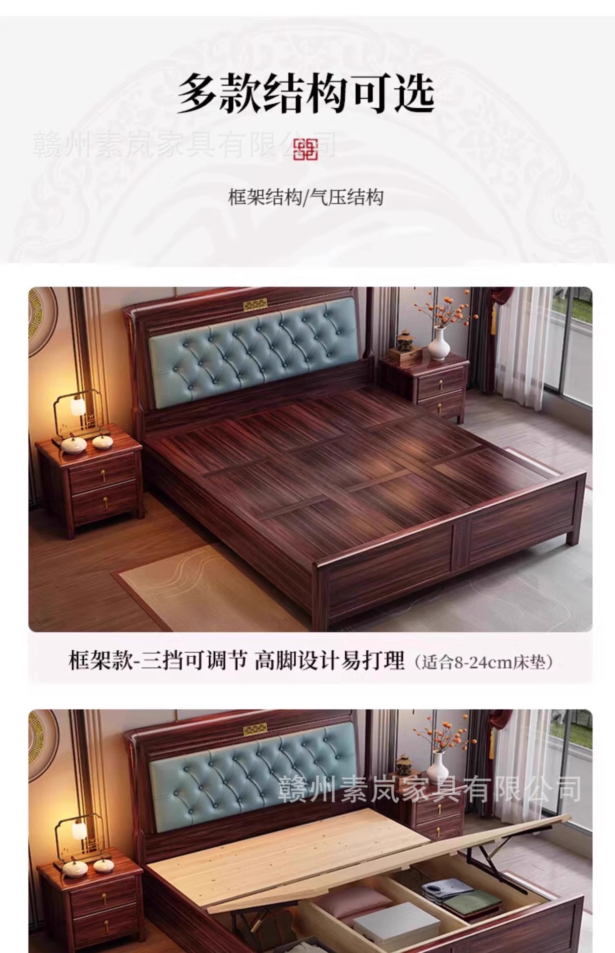 새로운 중국 스타일 에보니 솔리드 우드 침대 2.0 m 침실 웨딩 침대 1.8 m 마스터 침실 보관 더블 공기압 솔리드 우드 침대스토어 가기