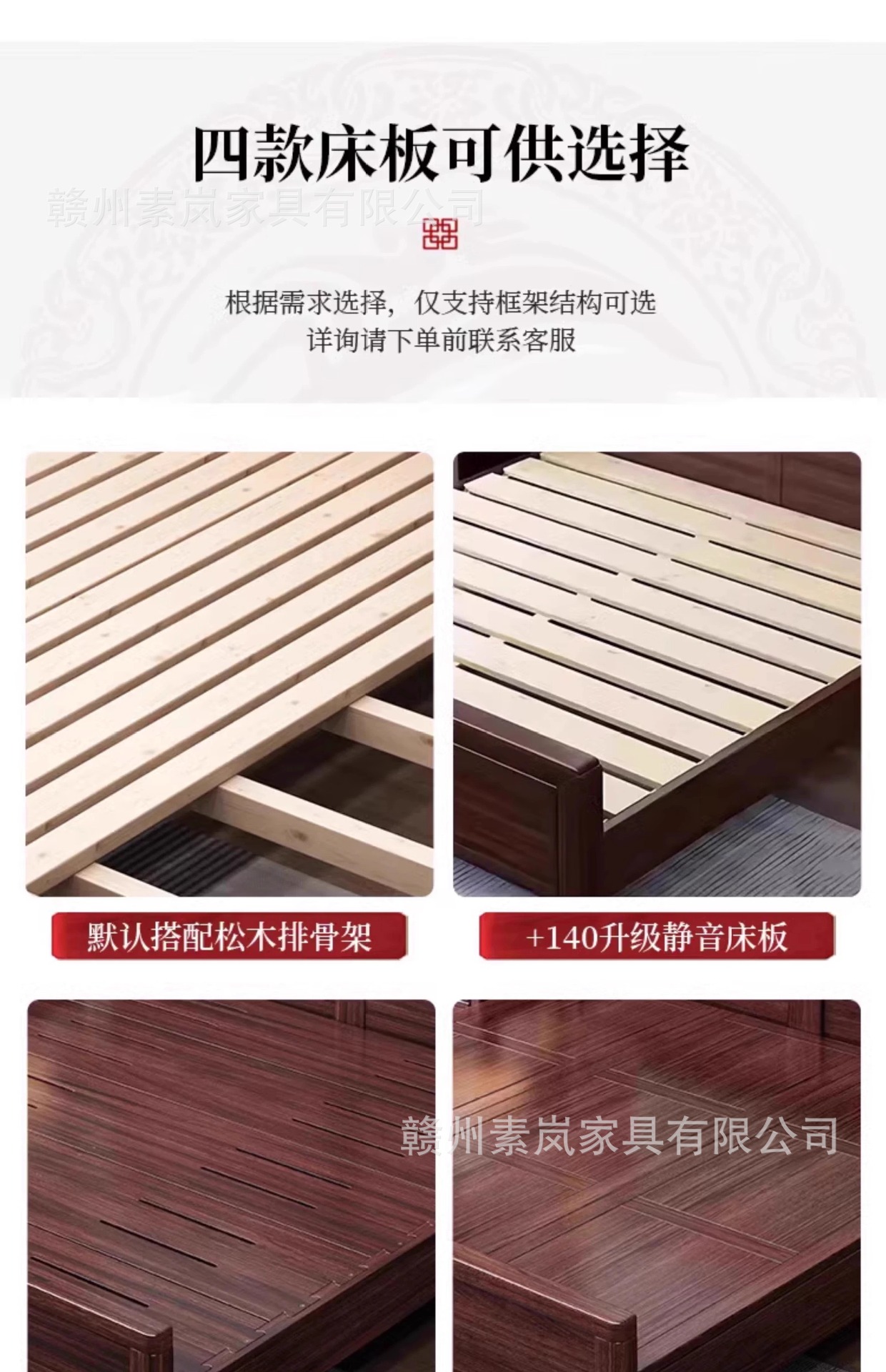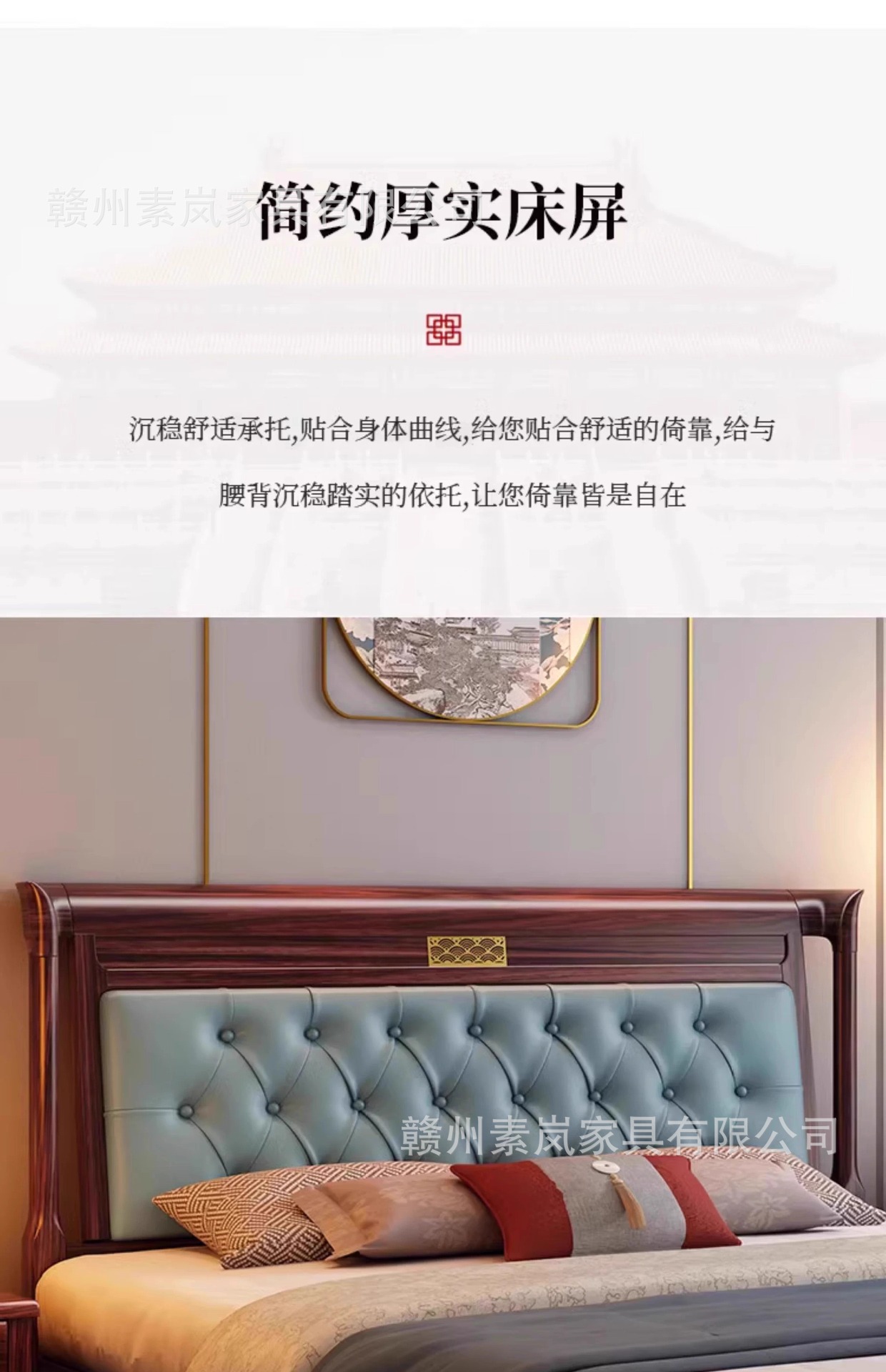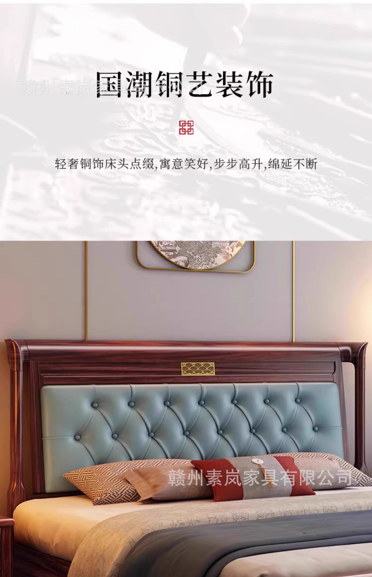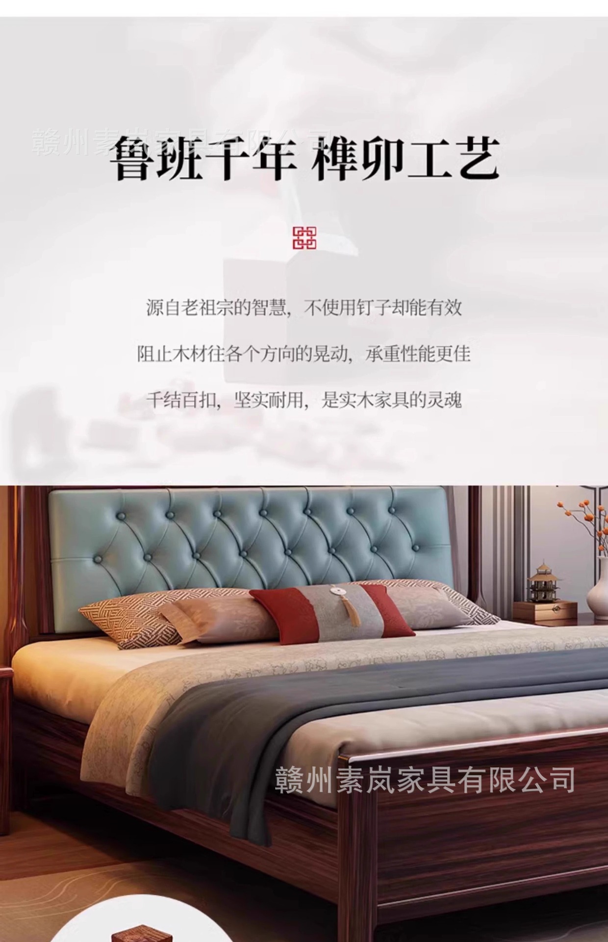새로운 중국 스타일 에보니 솔리드 우드 침대 2.0 m 침실 웨딩 침대 1.8 m 마스터 침실 보관 더블 공기압 솔리드 우드 침대스토어 가기