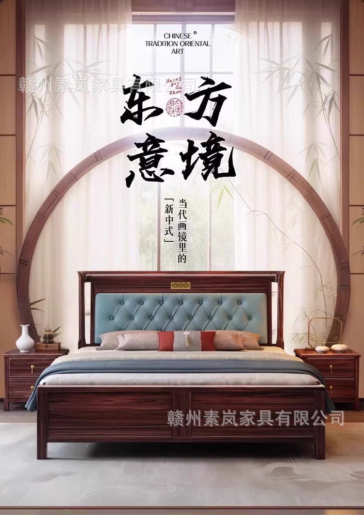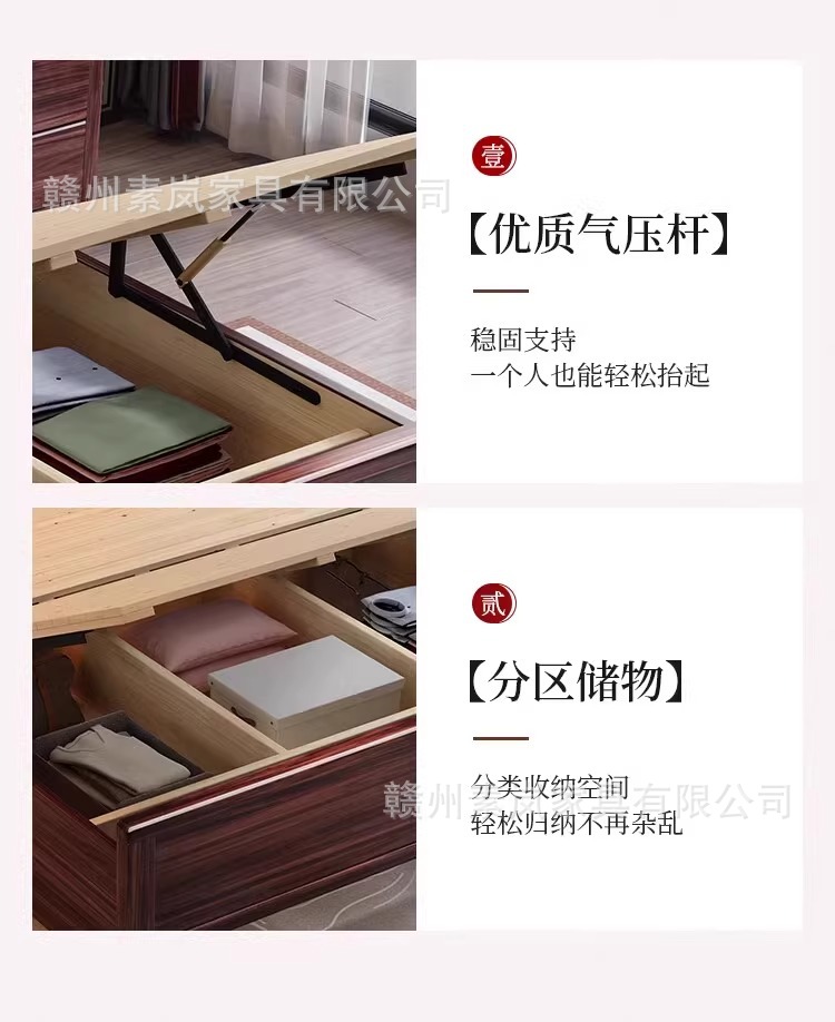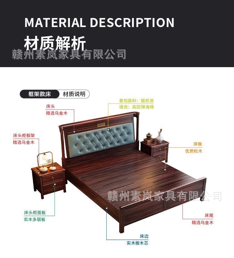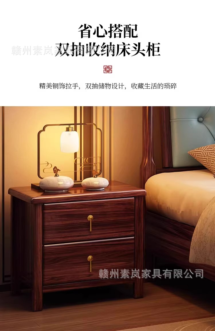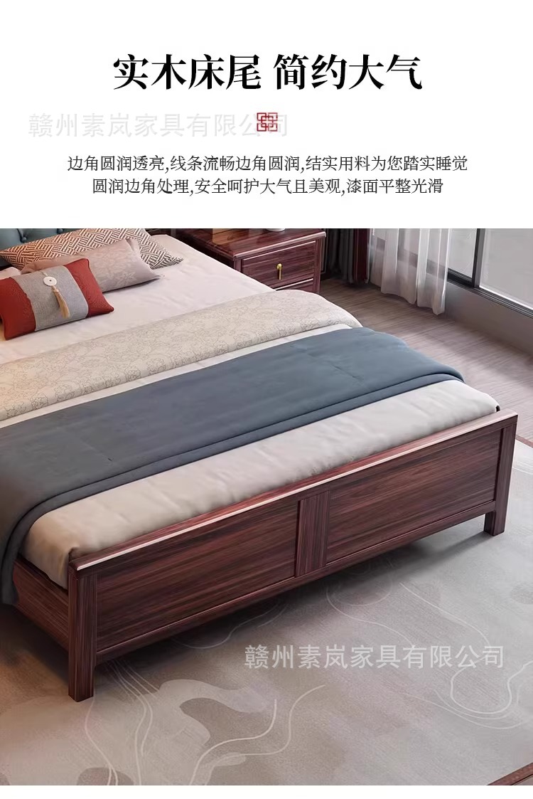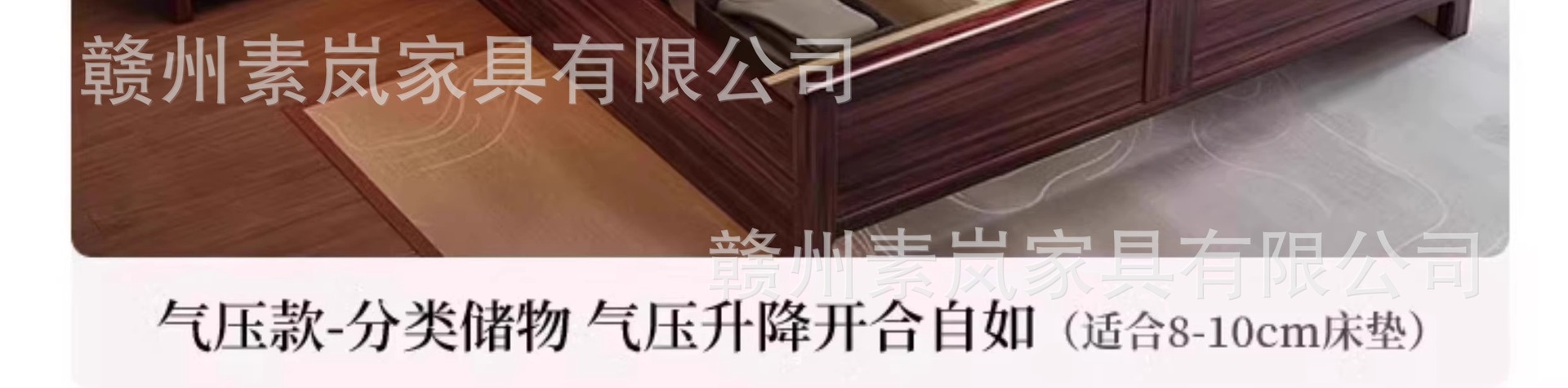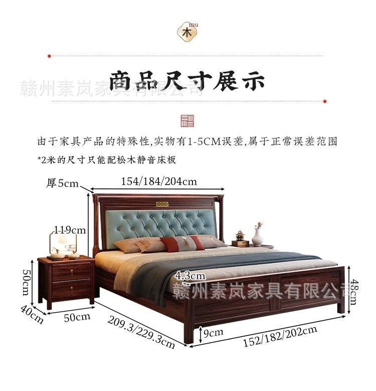 새로운 중국 스타일 에보니 솔리드 우드 침대 2.0 m 침실 웨딩 침대 1.8 m 마스터 침실 보관 더블 공기압 솔리드 우드 침대스토어 가기
