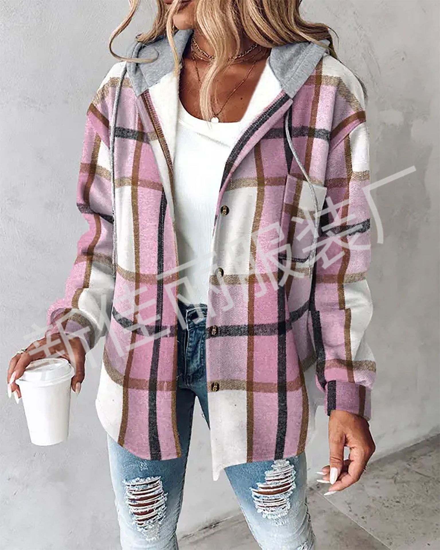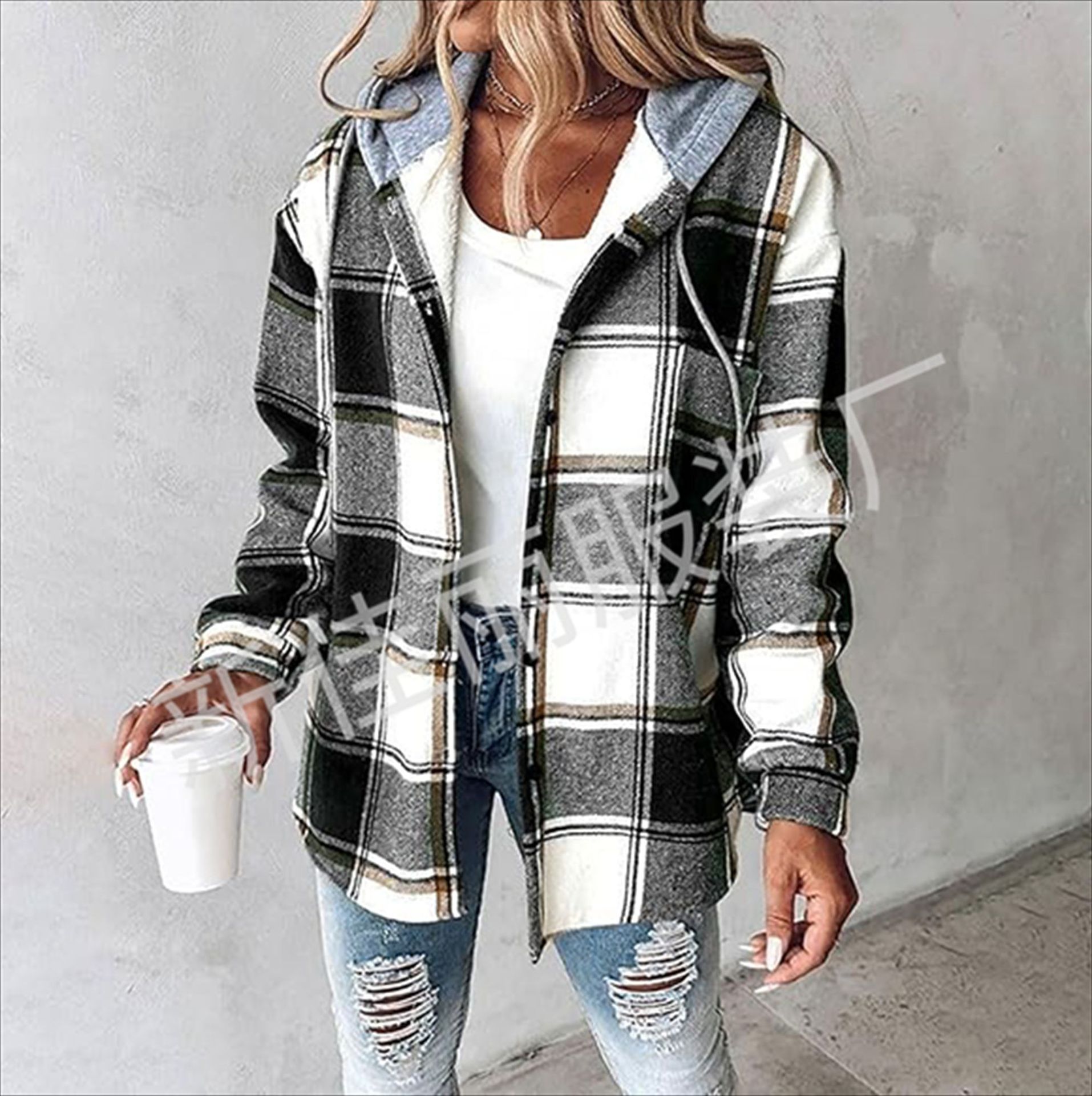 2024 유럽과 미국의 레저 AliExpress 아마존 폭발 여성 대형 격자 무늬 여성 코트 체크 무늬 가을과 겨울 새로운스토어 가기