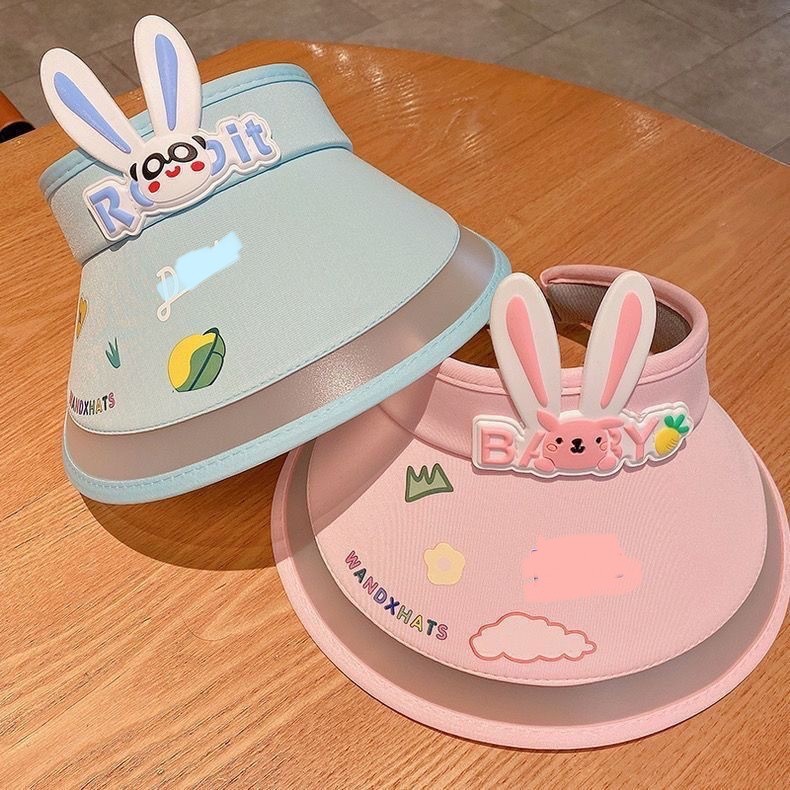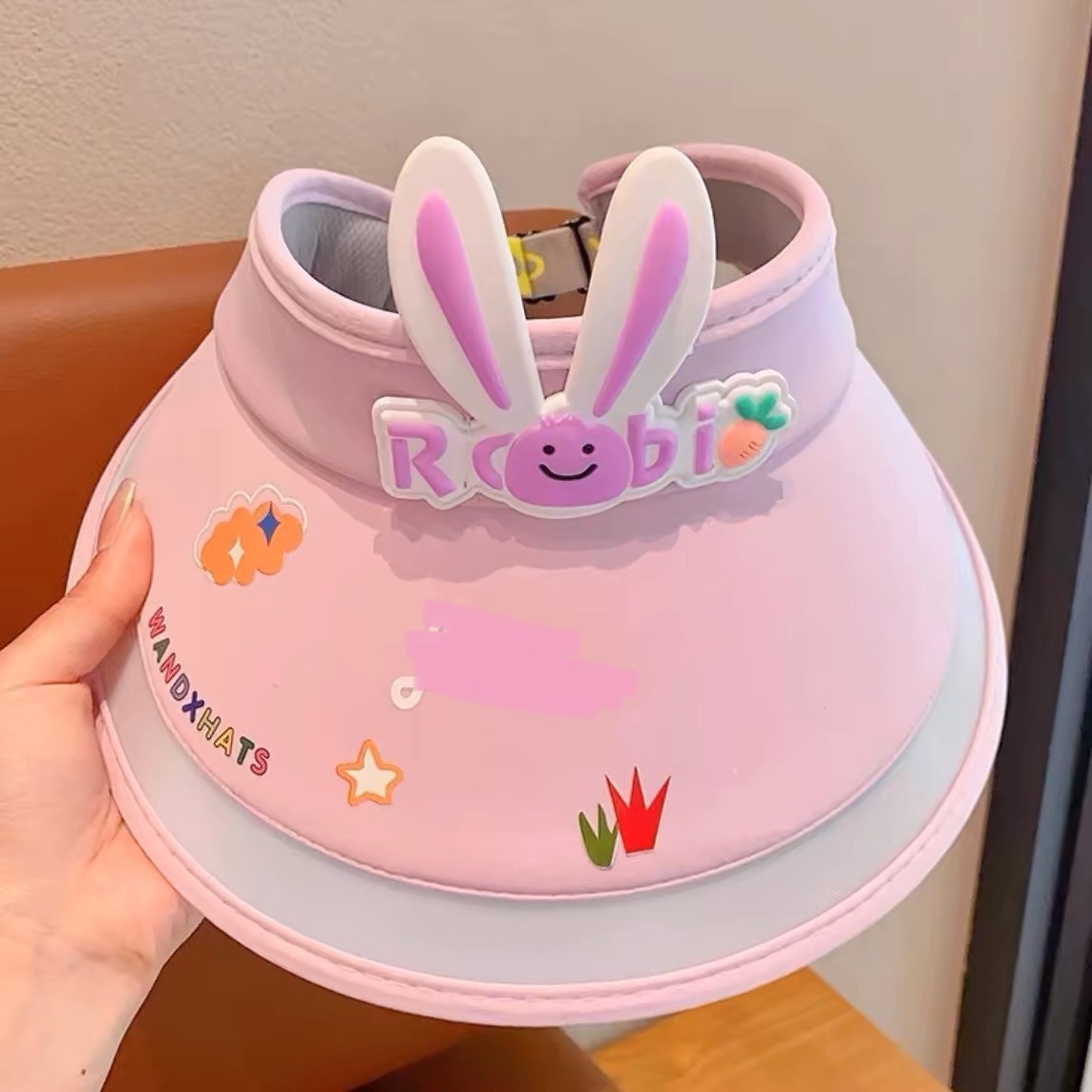 만화 토끼 빈 탑 모자 UV 방지 통기성 선 스크린 모자 여름 어린이 태양 모자 소년 소녀를위한 모자