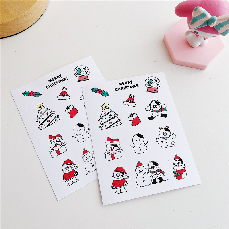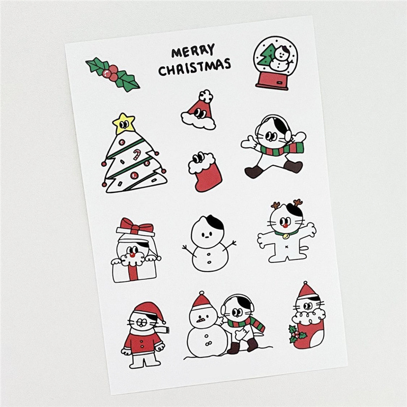 한국 새로운 크리스마스 고양이 만화 바람 손 계정 소재 음소거 얼굴 접착 스티커