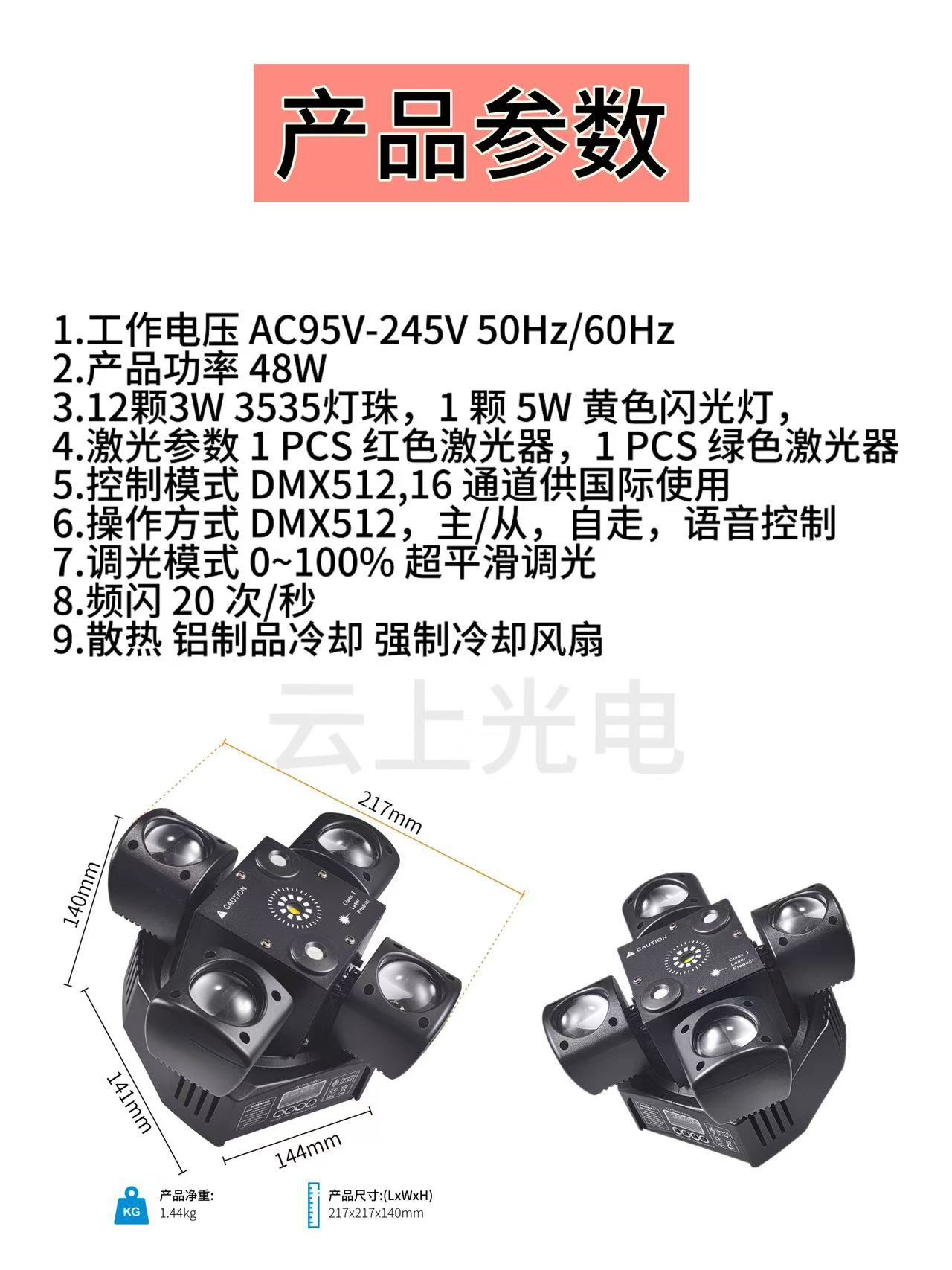 새로운 미니 4암 원격 제어 LED 다채로운 회전 무대 조명 KTV 바 박스 분위기 빔 레이저