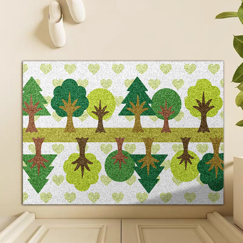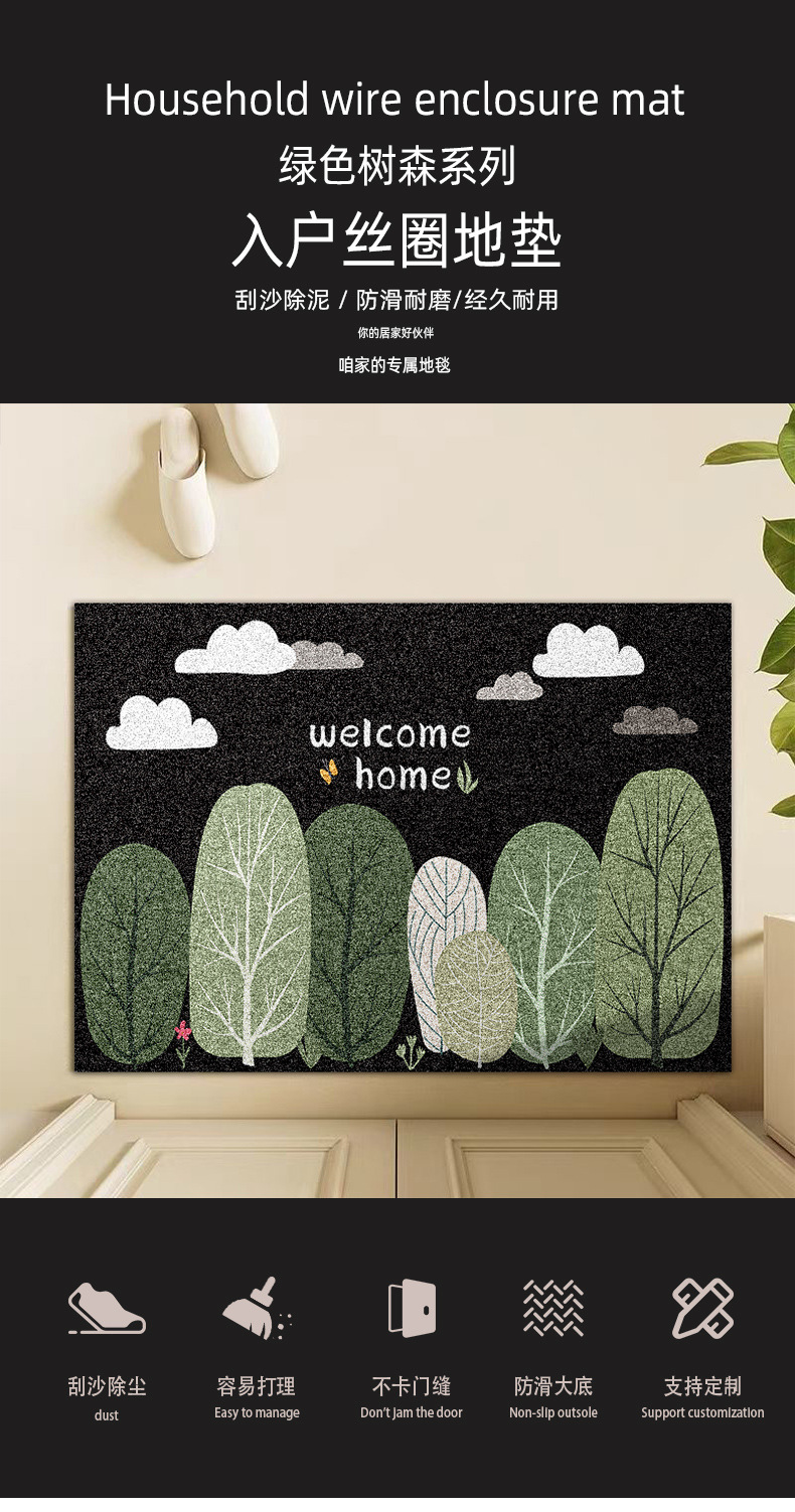 녹색 식물 입구 문 바닥 매트, 고탄성 와이어 링, 특수 미끄럼 방지 및 먼지 방지 가정용 크로스보더 PVC 바닥 매트