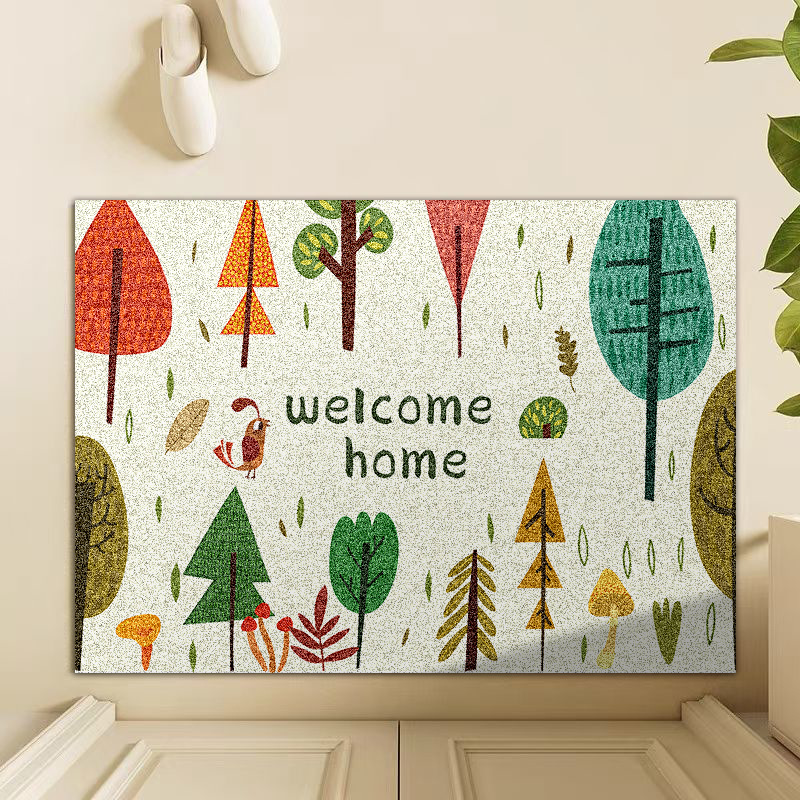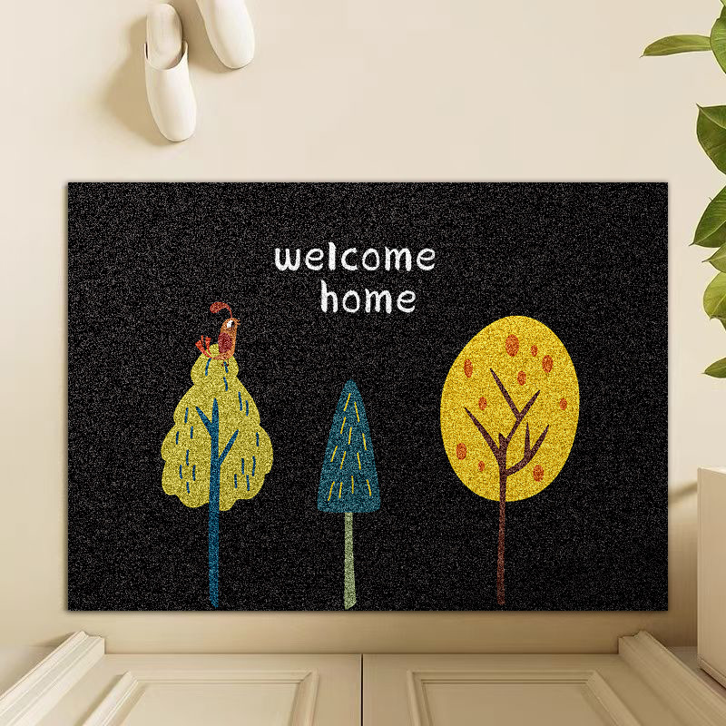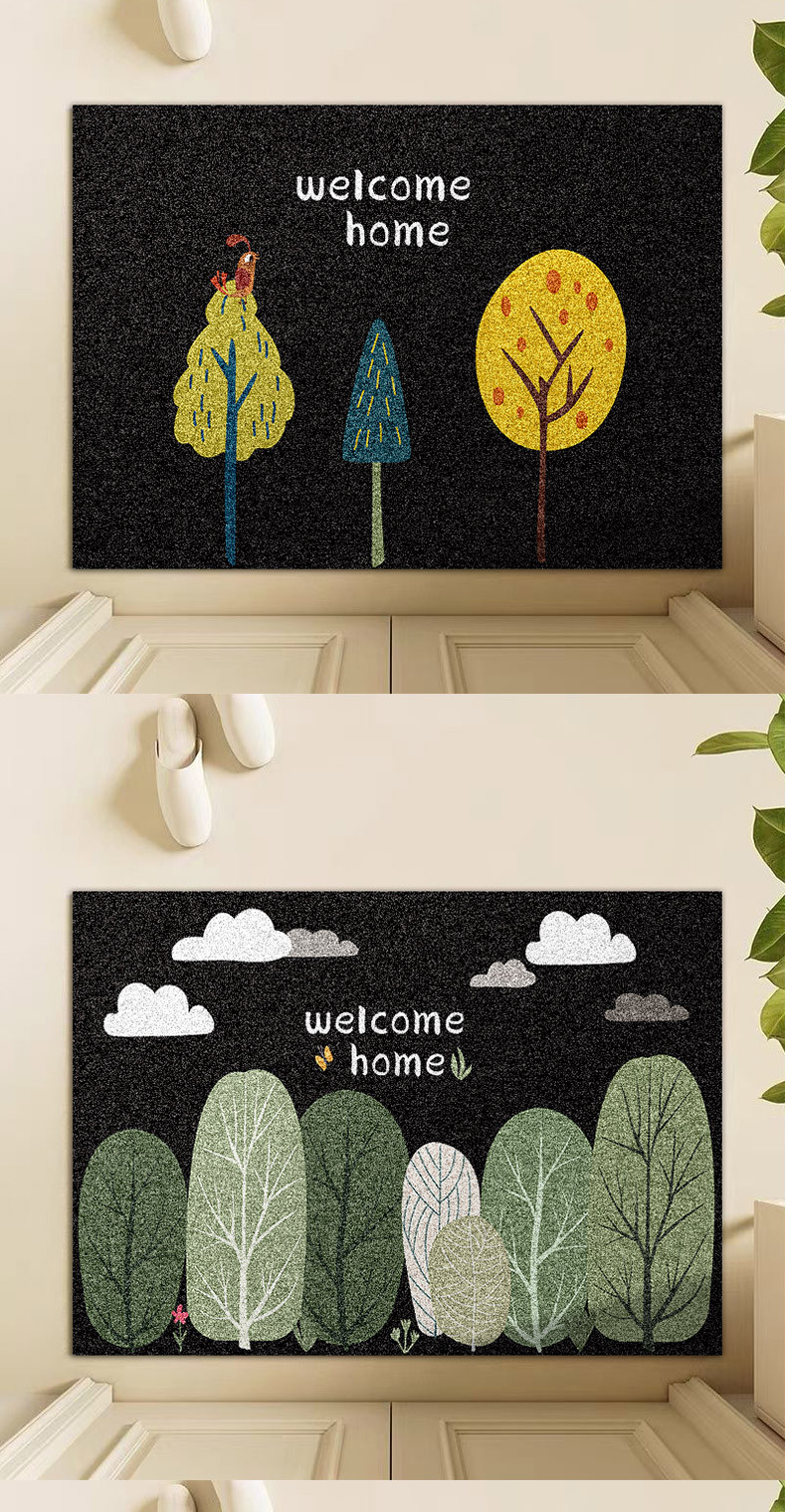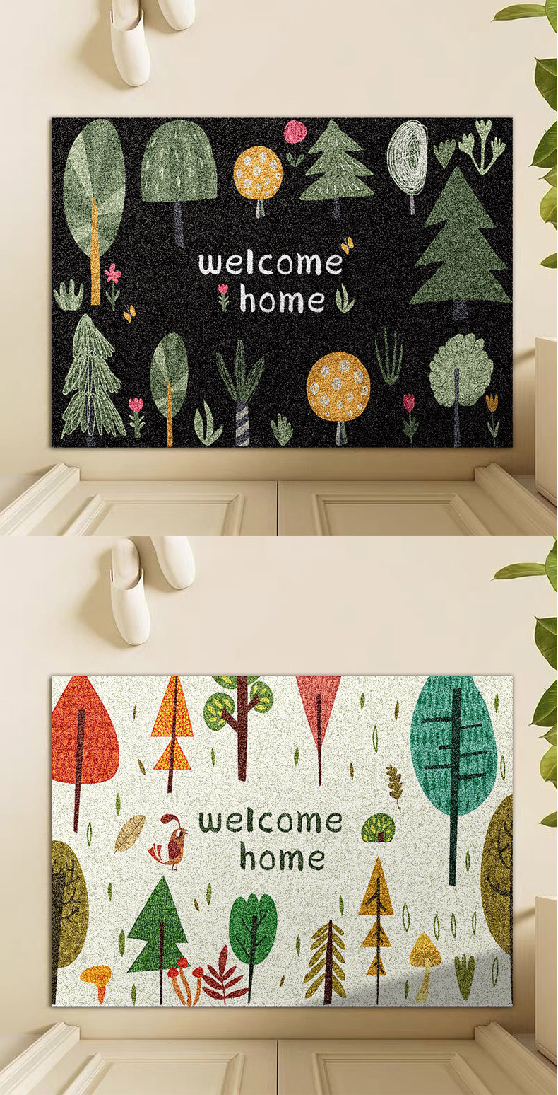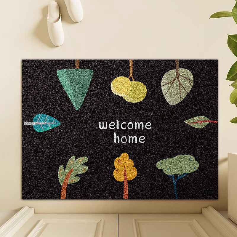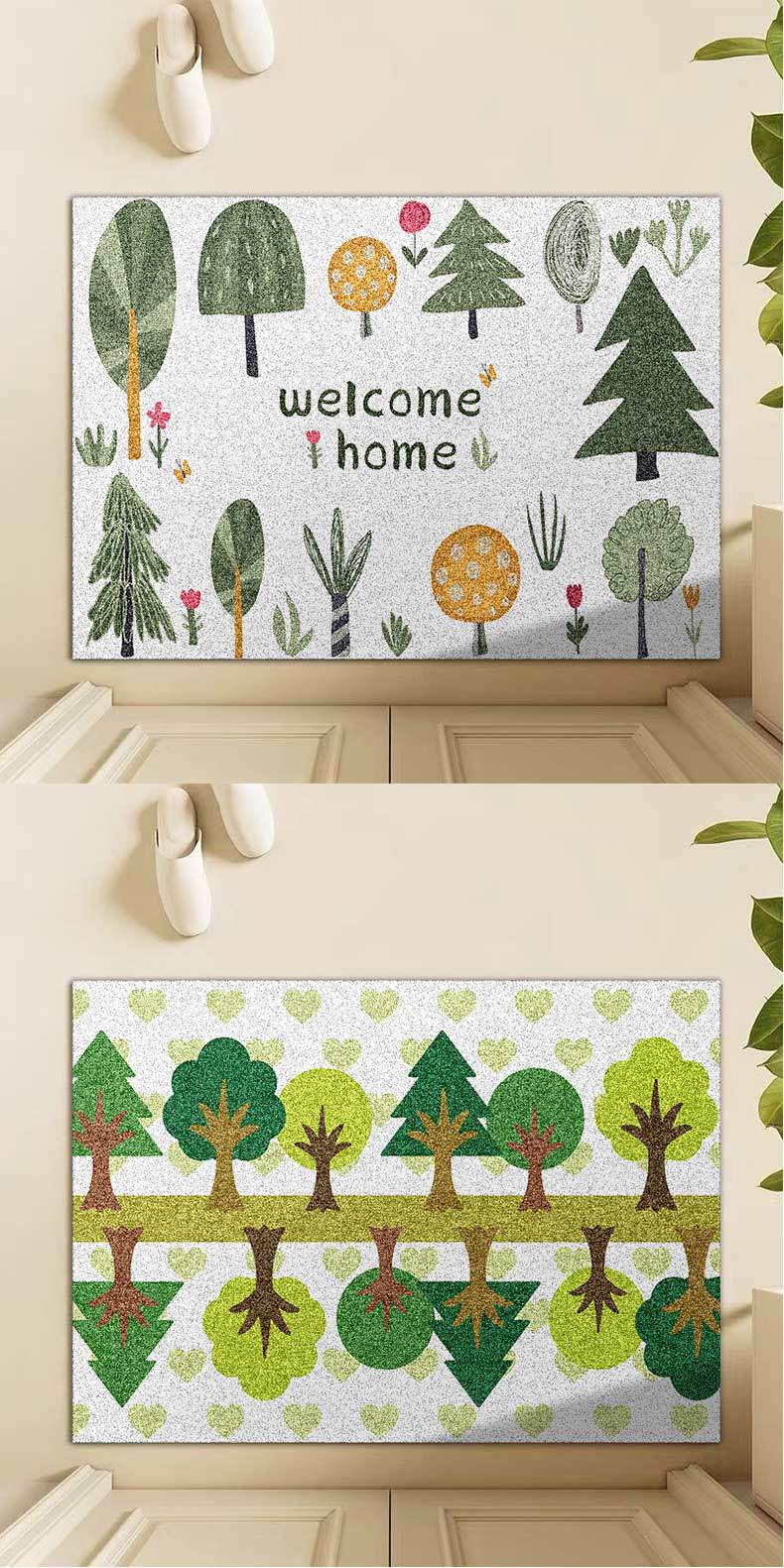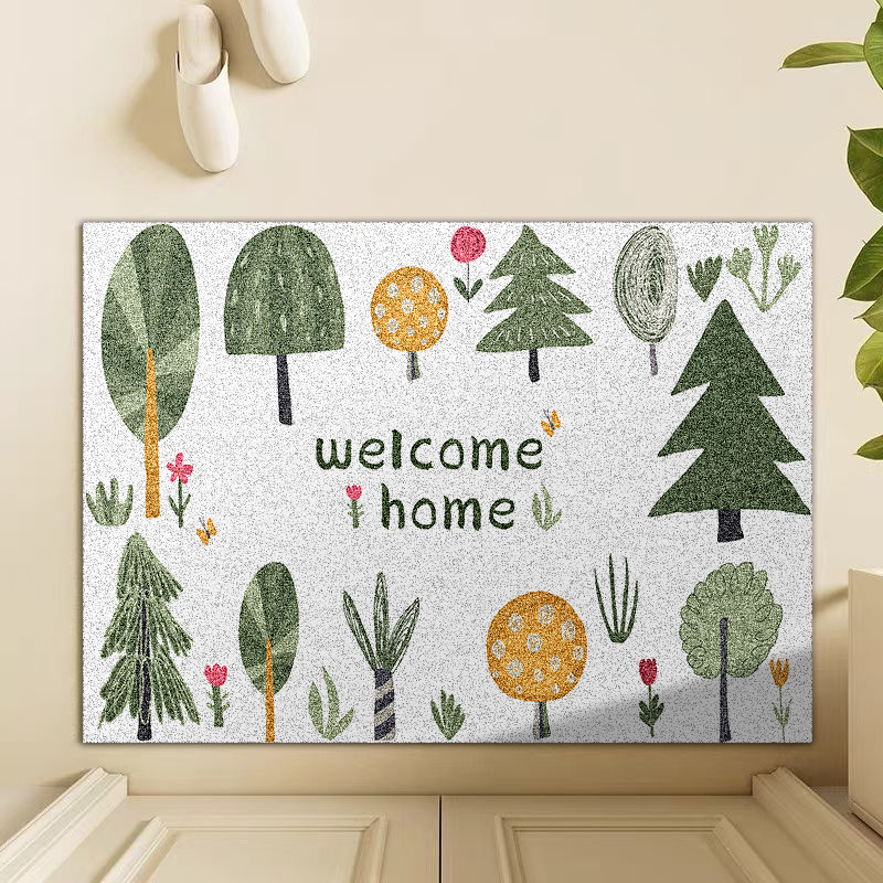 녹색 식물 입구 문 바닥 매트, 고탄성 와이어 링, 특수 미끄럼 방지 및 먼지 방지 가정용 크로스보더 PVC 바닥 매트스토어 가기
