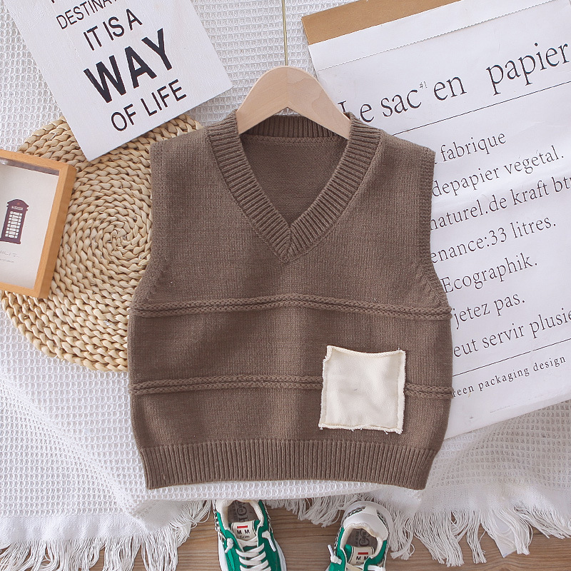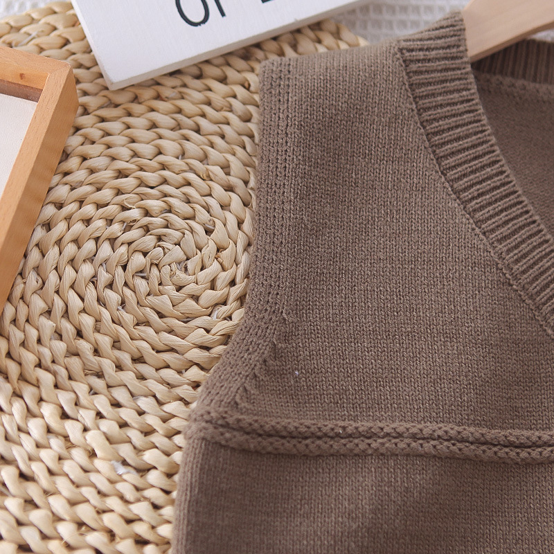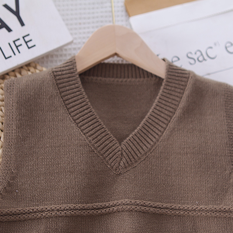 • MH-C25015-솔리드 컬러 조끼와 스웨터 3종세트-커피컬러