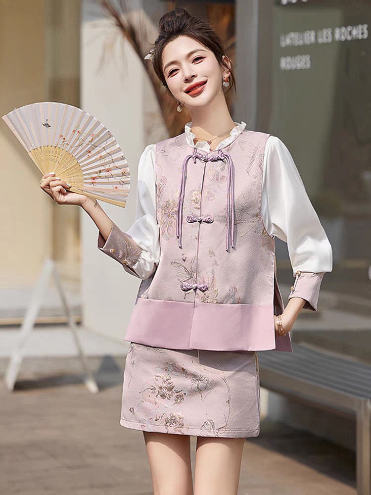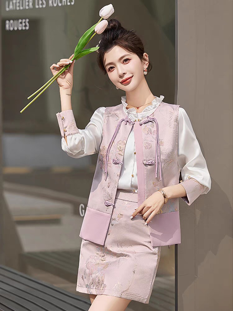봄과 가을 신복 세트 여성 국가 스타일 젠틀과 딸 조끼 짧은 치마 투피스 세트 (셔츠 없음)스토어 가기