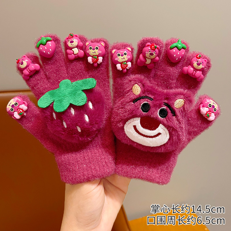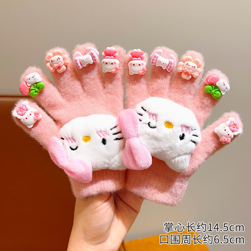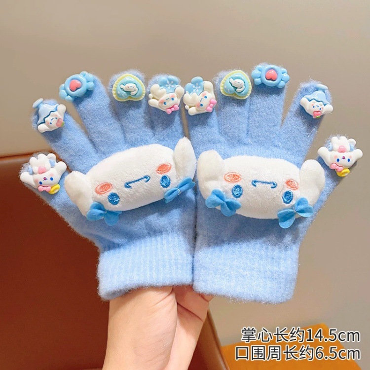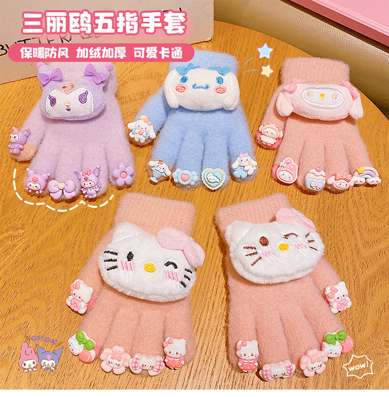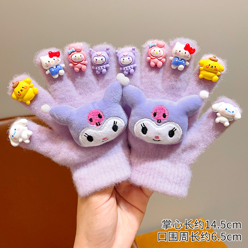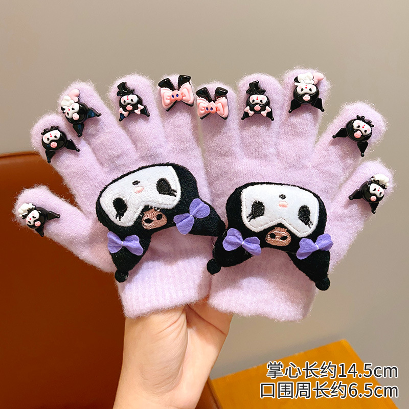 귀여운 산리오 어린이 장갑 2025 겨울 여자아이 쿠로미 다섯 손가락 장갑 플러스 벨벳 보온 방한 분리형 장갑
