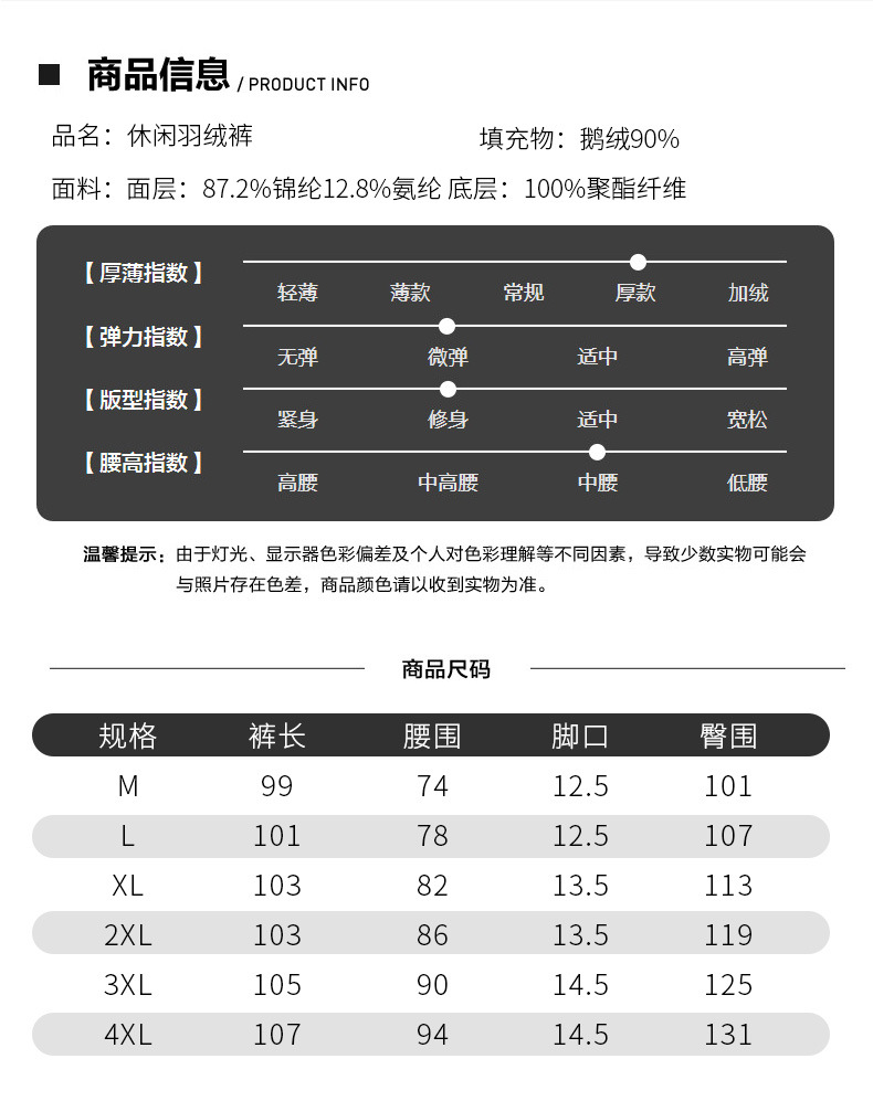 가벼운 럭셔리 브랜드 겨울 캐주얼 남성용 바지 구스 다운 바지 따뜻한 바지스토어 가기