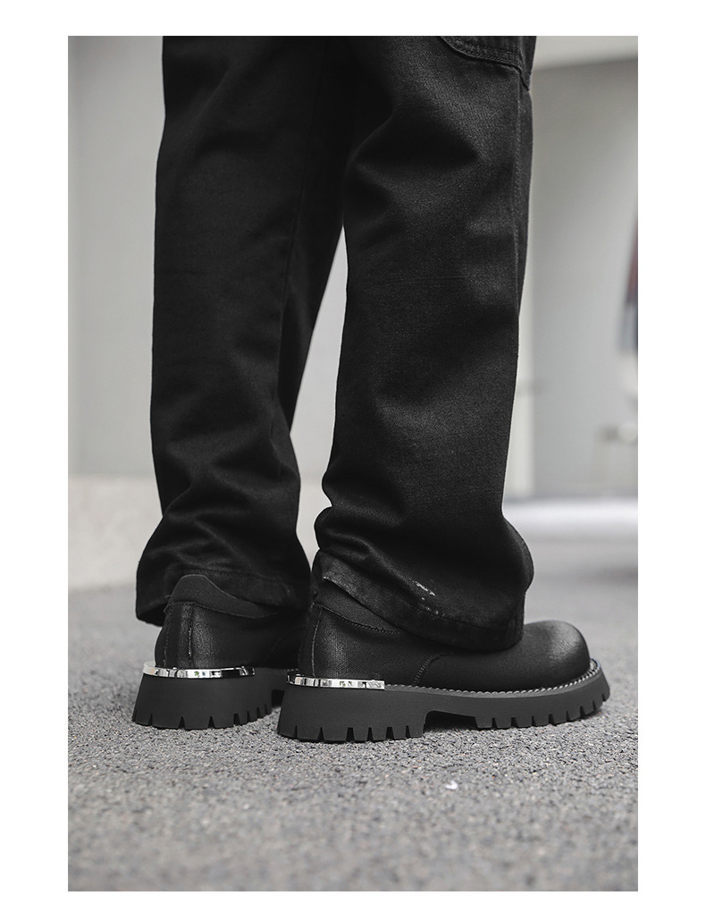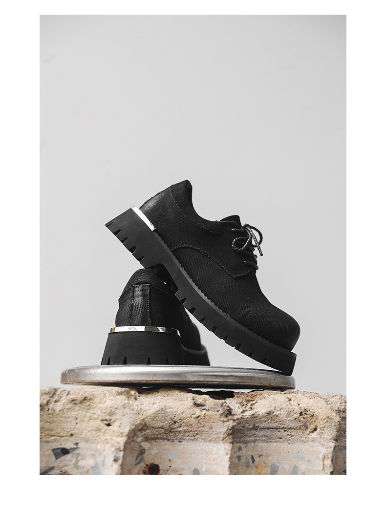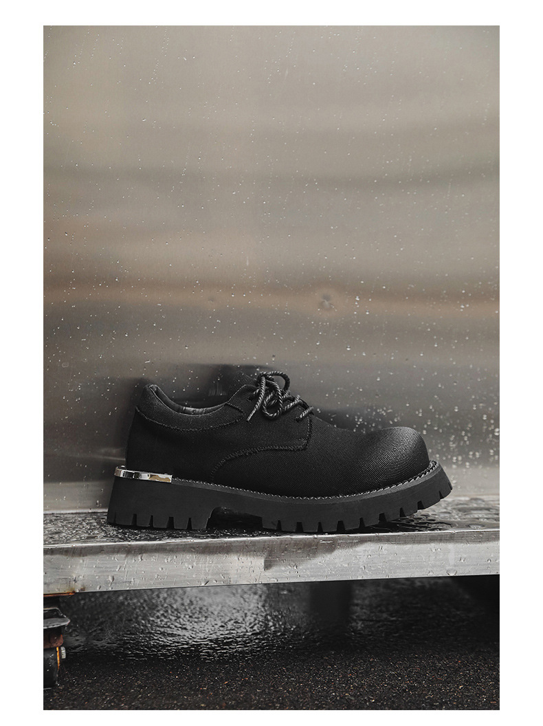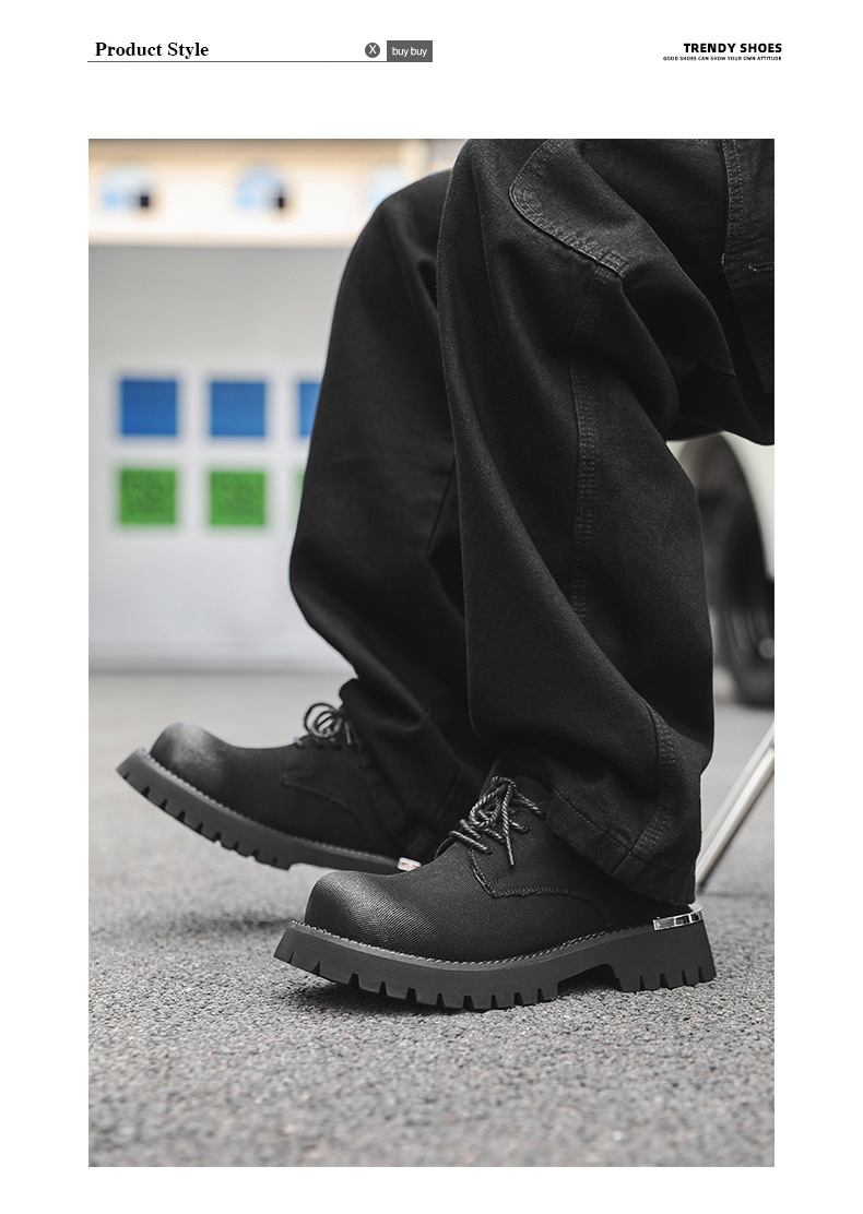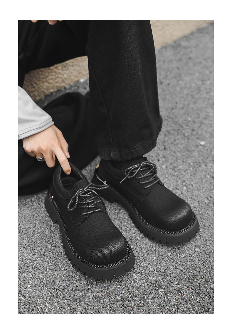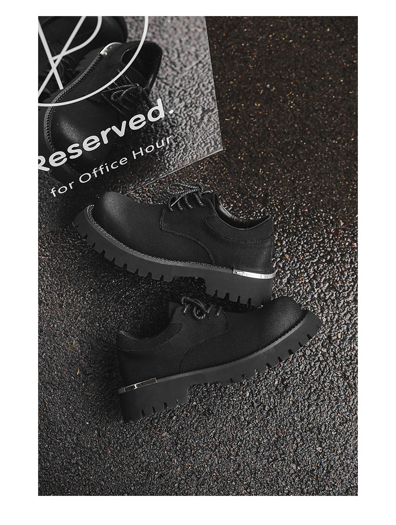 틈새 디자인 천으로 덮인 Big Toe All-match Round Toe Derby 신발 영국 스타일 복고풍 플랫폼 높이 증가 통기성 캐주얼 가죽 신발