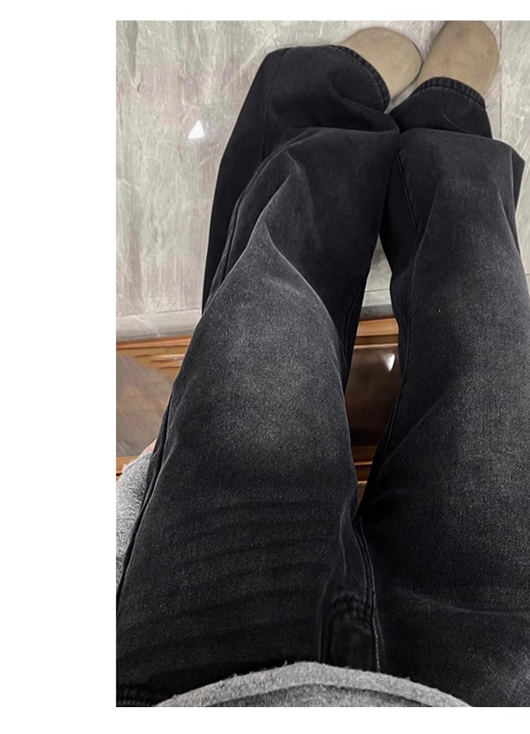 검은 회색 넓은 다리 청바지 여성의 가을과 겨울 기모 느슨한 플러스 사이즈 통통녀 슬리밍 배 모양의 그림 스트레이트 바지