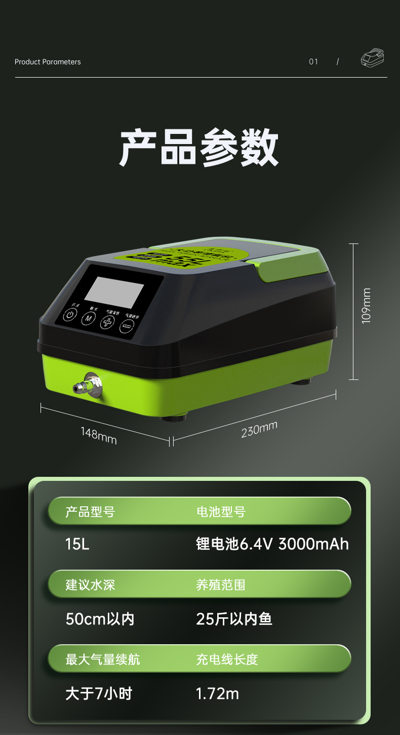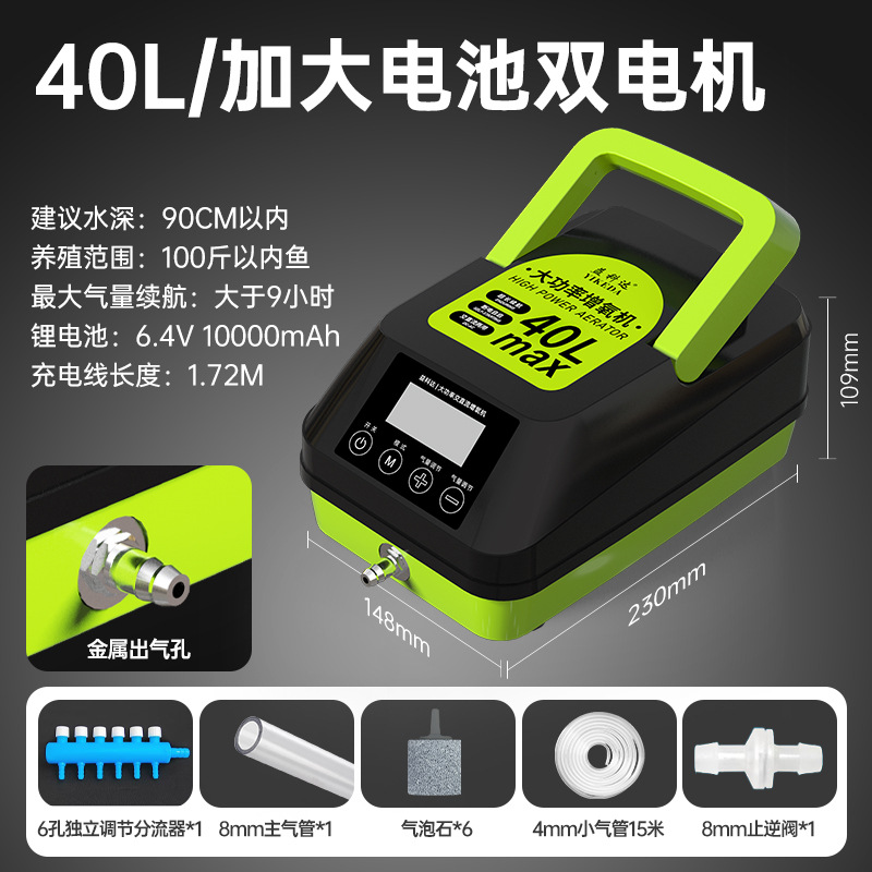 공장 소스 큰 흐름 산소 펌프 물고기 양식 가정용 야외 휴대용 충전 이중 목적 고출력 통풍기스토어 가기