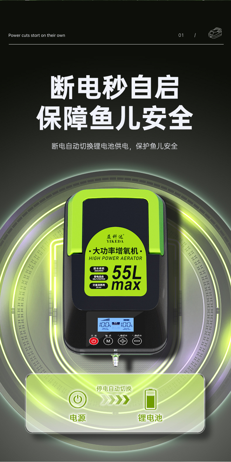 공장 소스 큰 흐름 산소 펌프 물고기 양식 가정용 야외 휴대용 충전 이중 목적 고출력 통풍기